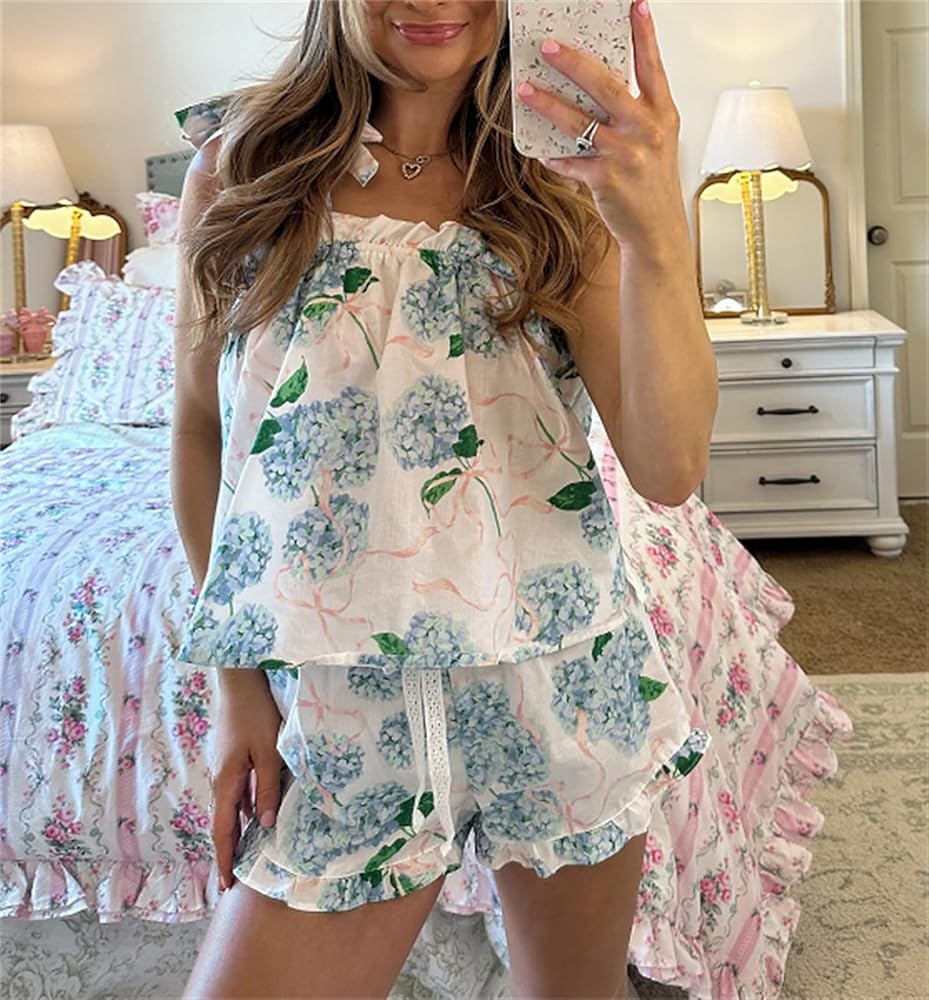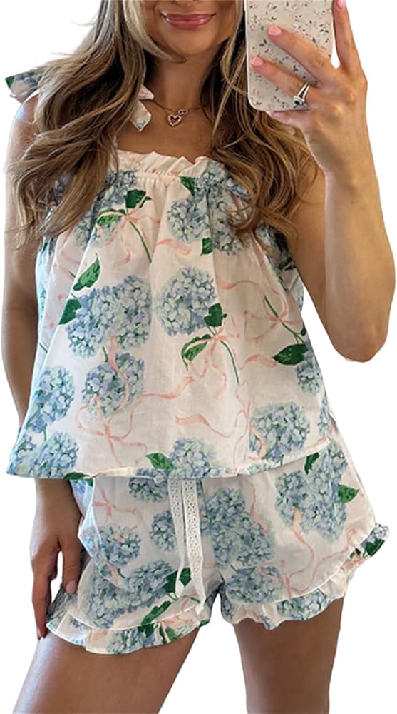الميزة: مجموعة ملابس الكتف الزهرية للنساء ، مجموعات شاطئ الكتف من النساء ، مجموعة من البيجامات الصيفية ، مجموعة شورتات للطباعة الزهرية ، مجموعة ملابس النساء ، مجموعات Y2K الخروج ، مجموعة ملابس النساء ، أنيقة ولطيفة للارتداء