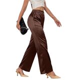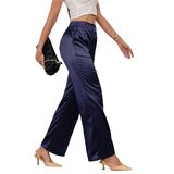 - سروال الساق الواسع للسيدات مرنة مرنة في الخلف سراويل العمل السراويل المستقيمة الطويلة