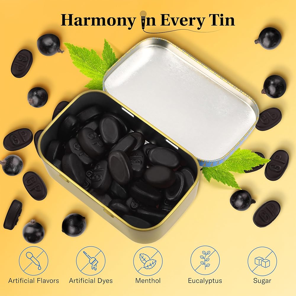 مصنوعة من الفاكهة النقية: يتم تصميم pastilles على وجه الحصر باستخدام ثمار متشابكة من أشعة الشمس ، والتي يتم اختيارها فقط عندما تكون قد طورت رائحة مكثفة وخصائص مهدئة. العوامل السوداء ، المعروفة بكونها غنية بفيتامين C ، هي مكون رئيسي. أنها تدعم الجهاز المناعي ويحتوي على عناصر تقوية اللثة ، وتهدئة الحلق ، وحماية الصوت.