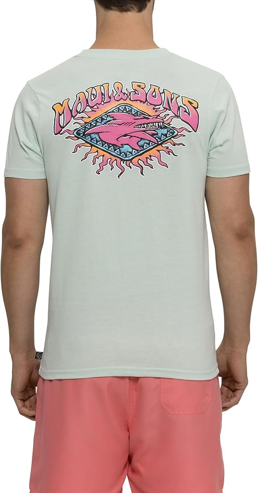 Iconic Shark Graphic: Featuring the signature Maui & Sons Shark Logo printed on the front and back, this white short sleeve graphic tee delivers a bold and timeless look. Discover the full collection by visiting our storefront.