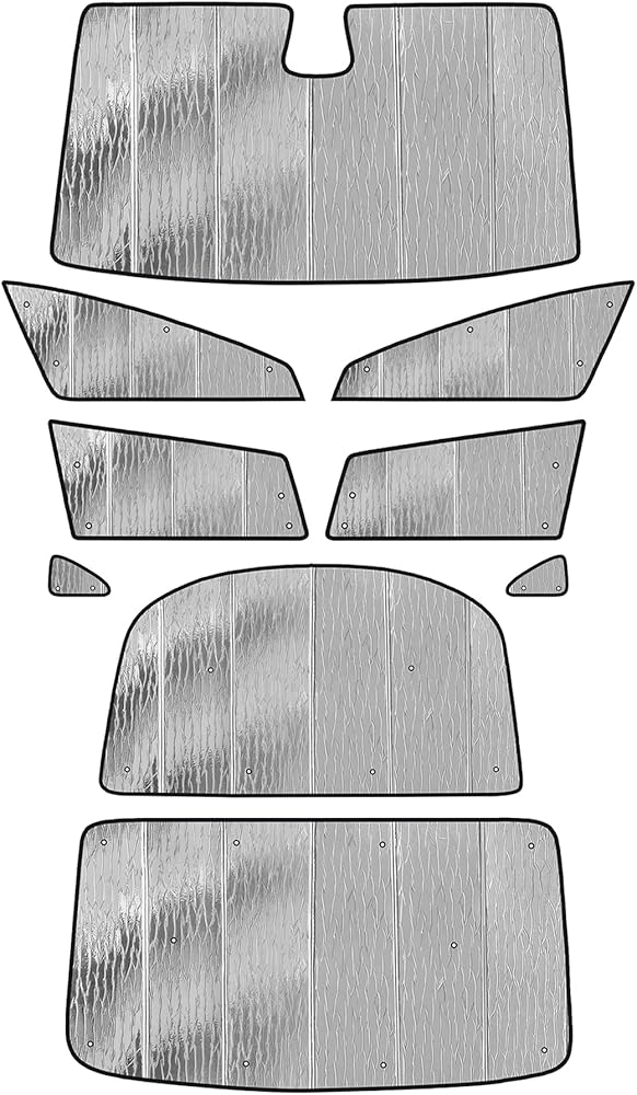 - قم بتضمين: 1 الزجاج الأمامي Sunshade ، وظل النافذة العلوي ، و 1 خلفي خلفي شمسي ، وظلال نافذة جانبية 2 الأمامية وظلال نافذة جانبية خلفية (مجموعة كاملة)