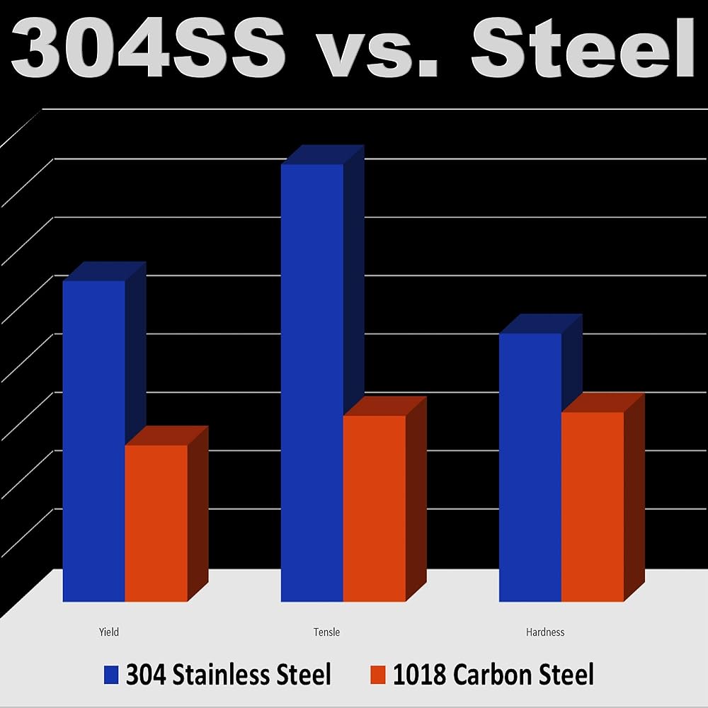 TOUGHER: 304 Stainless Steel is Harder and Stronger than the Original Axle and Will Last Longer. These Axles Also Have a Higher Yield and Tensile Strength.