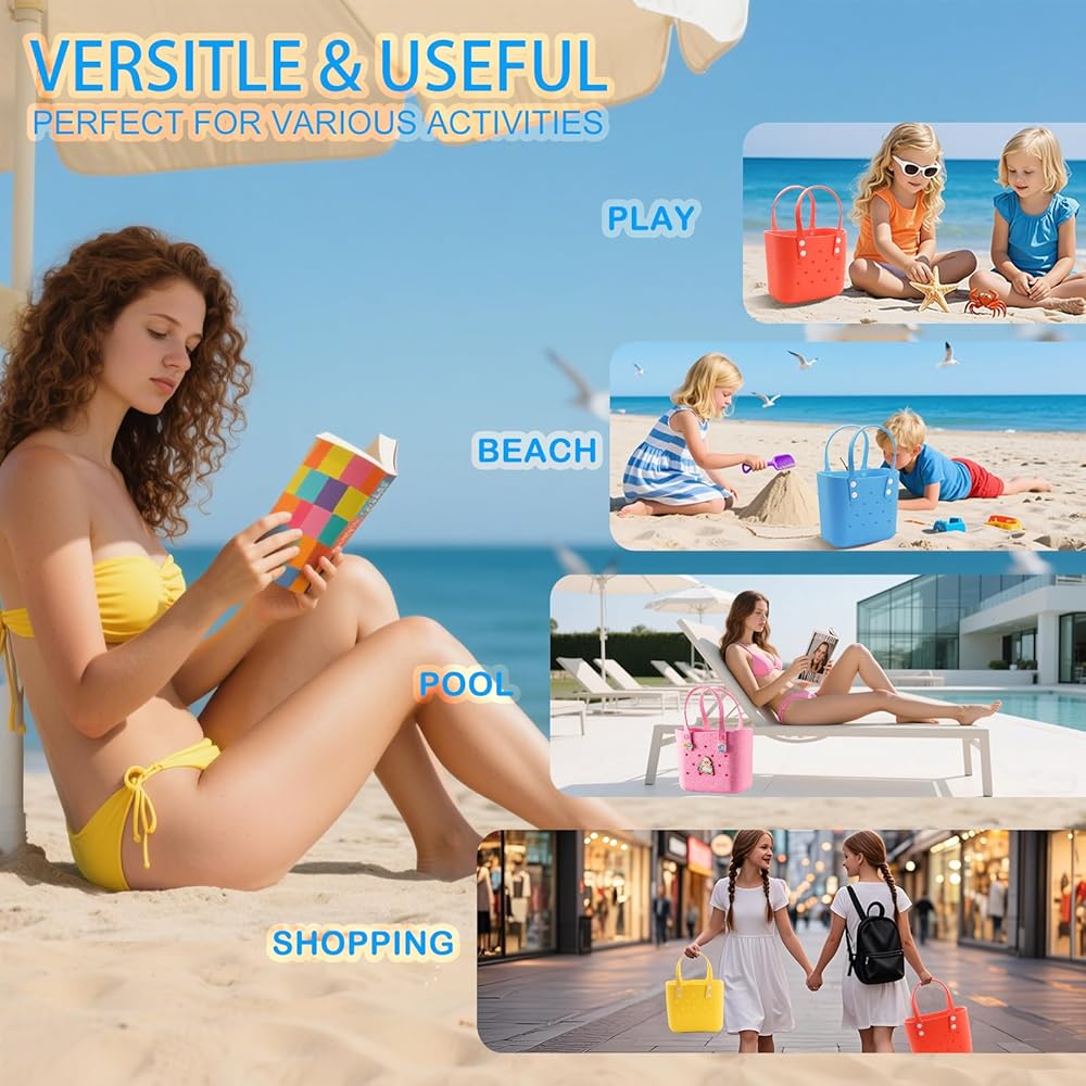 حقيبة الشاطئ متعددة الوظائف: تم تصميم ثقوب الهواء لمساعدة العناصر الرطبة في الجفاف في كيس المطاط والتأكد من أن العديد من العناصر نظيفة وطازجة. بالإضافة إلى ذلك ، يتيح لك الثقب المدمج أن يزحف سحر حقيبتك المفضلة ، مع إضافة شاشة مخصصة