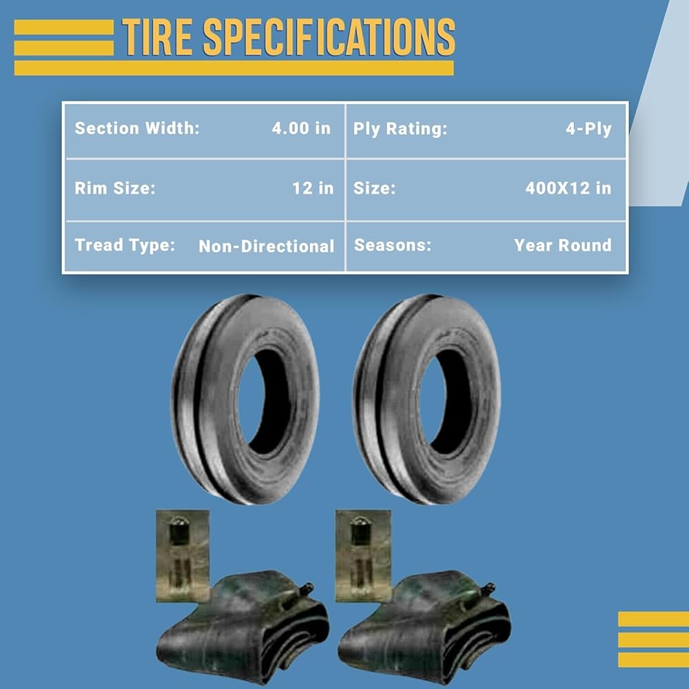 اثنان 4.00-12 إطارات وأنابيب الجرار الأمامية D/S تناسب Farmall Cub