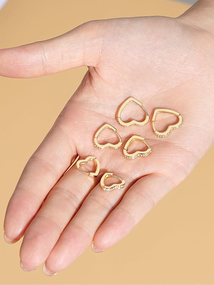 • أقراط القلب الفضية: هذه الأقراط الفضية الصغيرة الرائعة على شكل قلب ومرصعة بالزركونيا المكعبة، مصممة لإضافة لمسة من التألق والأناقة إلى أي ملابس. تشتمل هذه المجموعة على ثلاثة أزواج من الأطواق بأقطار داخلية مختلفة تبلغ 0.39 بوصة (10 ملم)، و0.47 بوصة (12 ملم)، و0.55 بوصة (14 ملم)، مما يضمن الملاءمة المثالية لأسلوبك الفردي.