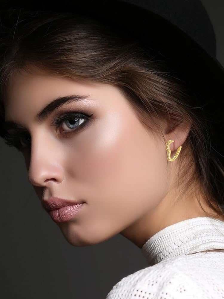 • أقراط على شكل قلب للنساء: هذه الأقراط الصغيرة مصنوعة لإثارة إعجابك. مصنوعة من النحاس عالي الجودة المطلي بالذهب الأبيض، وتتميز بلمسة نهائية لامعة تضفي الرقي. تضمن التركيبة المضادة للحساسية والخالية من النيكل ارتداءً مريحًا، حتى للأشخاص ذوي البشرة الحساسة. يمكنك الاستمتاع بهذه الأقراط دون القلق بشأن التهيج أو الحساسية.