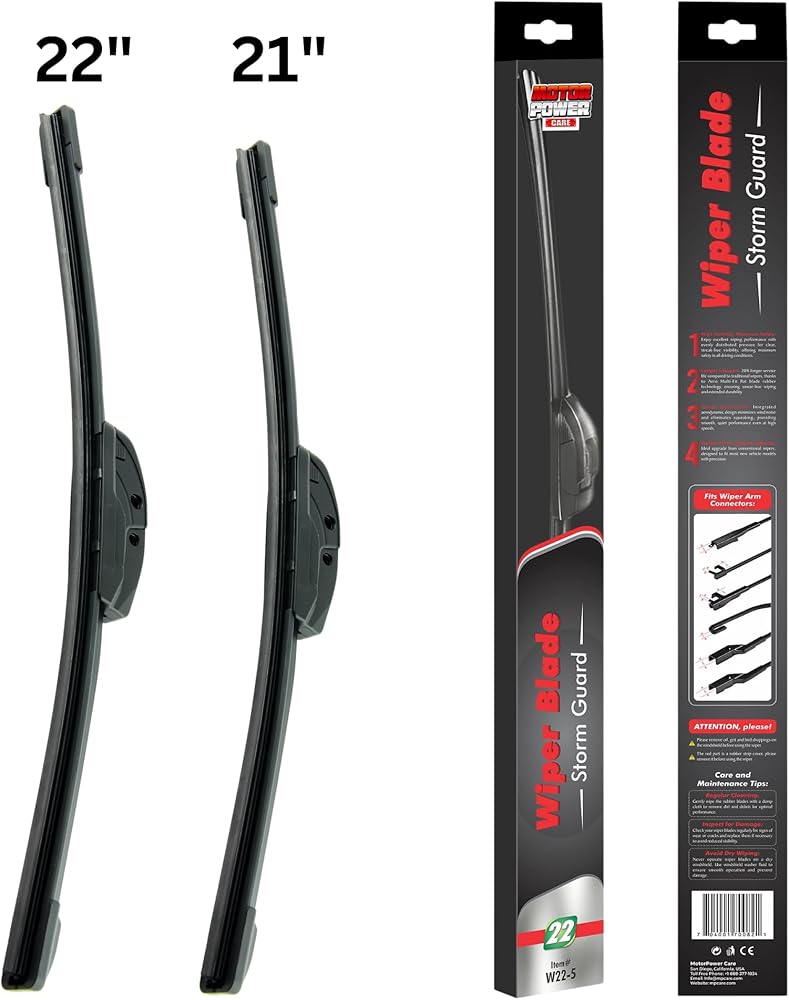 Upgrade your driving experience with MotorPower Care's 2-in-1 Water Repellent Wiper Blades, specially designed to deliver exceptional clarity and durability, no matter the weather. These premium windshield wipers combine advanced water-repellent technology with high-performance wiping action, ensuring your windshield stays clear of rain, sleet, and snow. With superior resistance to wear and tear, MotorPower Care wiper blades provide long-lasting performance, making them the ideal replacement for any vehicle's windshield wiper system. Experience smoother and quieter wiping, a streak-free view, and improved safety on the road with our top-quality 2-in-1 wiper blades. MotorPower Care – where innovation meets reliability. Additional Information: Brand: MotorPower Care Product Type: 2-in-1 Water Repellent Wiper Blades Compatibility: Fits most makes and models, refer to size chart for specific fitment. Package Includes: 2 Wiper Blades (driver and passenger side) Material: High-quality rubber and synthetic blends for all-weather durability Ideal For: Car, SUV, and truck owners seeking improved visibility and reliable performance in all conditions. Boost your road safety and enjoy a crystal-clear windshield with MotorPower Care 2-in-1 Water Repellent Wiper Blades. Add to cart today and see the road like never before!