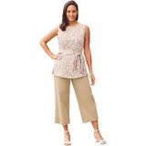 A versatile tunic-and-pant set with an everyday polished look. Crafted in a lightweight, breathable linen blend, the tunic top has a round neckline and a sash belt for a flattering fit. The cropped capris feature a contoured waistband with a zip fly and tab closure. Casual, elegant, and complete, it's the perfect spring and summer ensemble. Tailored top with sash creates a chic silhouette Cropped capris have an iconic straight fit for a sharp look 31" long top hits below the hips 21" capris hit mid-calf Fully lined Linen/rayon Machine washable Imported