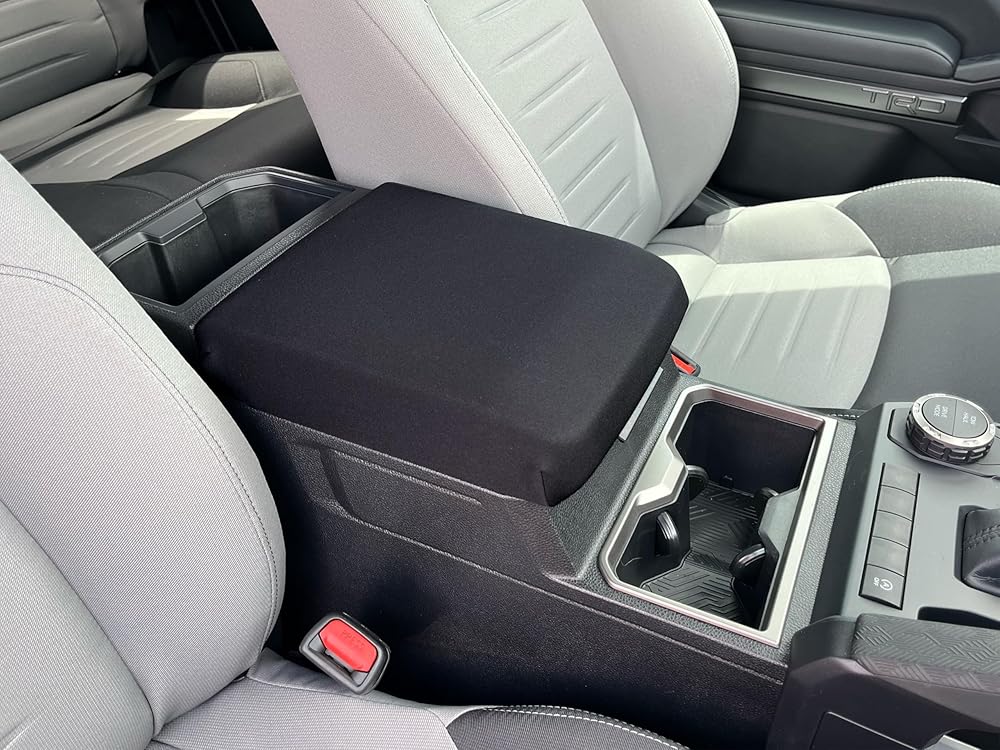 Enhance your Toyota Tacoma (2024-2025) interior with this custom-fit neoprene center console cover, designed for superior armrest protection and improved driving comfort. Expertly engineered specifically for the Tacoma this armrest cover provides a seamless fit over your factory center console, acting as a robust protective shield. Guard your center console against everyday hazards like spills, stains, scratches, sun damage, dirt, and wear from pet claws or passenger use. Experience added comfort on every drive with the soft, cushioned neoprene armrest surface. It's also water-resistant and simple to clean, perfect for maintaining your pristine interior during commutes or long journeys. Whether you're preserving your new vehicle console or concealing existing blemishes, this practical and stylish center console protector is an essential accessory. Protect your investment and keep your interior looking refined and newer for longer, all while riding in enhanced comfort!