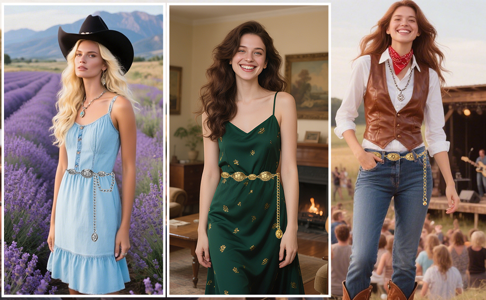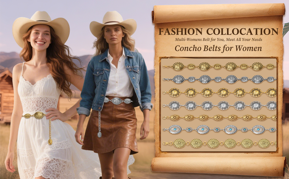 • التصميم متعدد الاستخدامات: أحزمة Concho للنساء تتزحلق تمامًا مع الفساتين والجينز والتنانير والطوابع الزائدة والسراويل والحلول والرلب. مثالي للحفلات والتواريخ والمهرجانات الموسيقية والنوادي الليلية والأحداث ذات الطابع الغربي والأندية الريفية والروودس ووزارة عصر النهضة