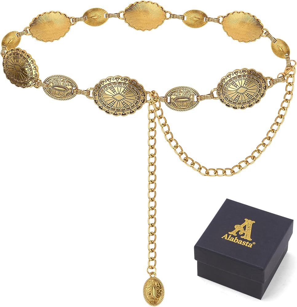 حزام ألاباستا الغربي للنساء، أحزمة سلسلة كونشو لفساتين الجينز وحفلات الحفلات الموسيقية الريفية