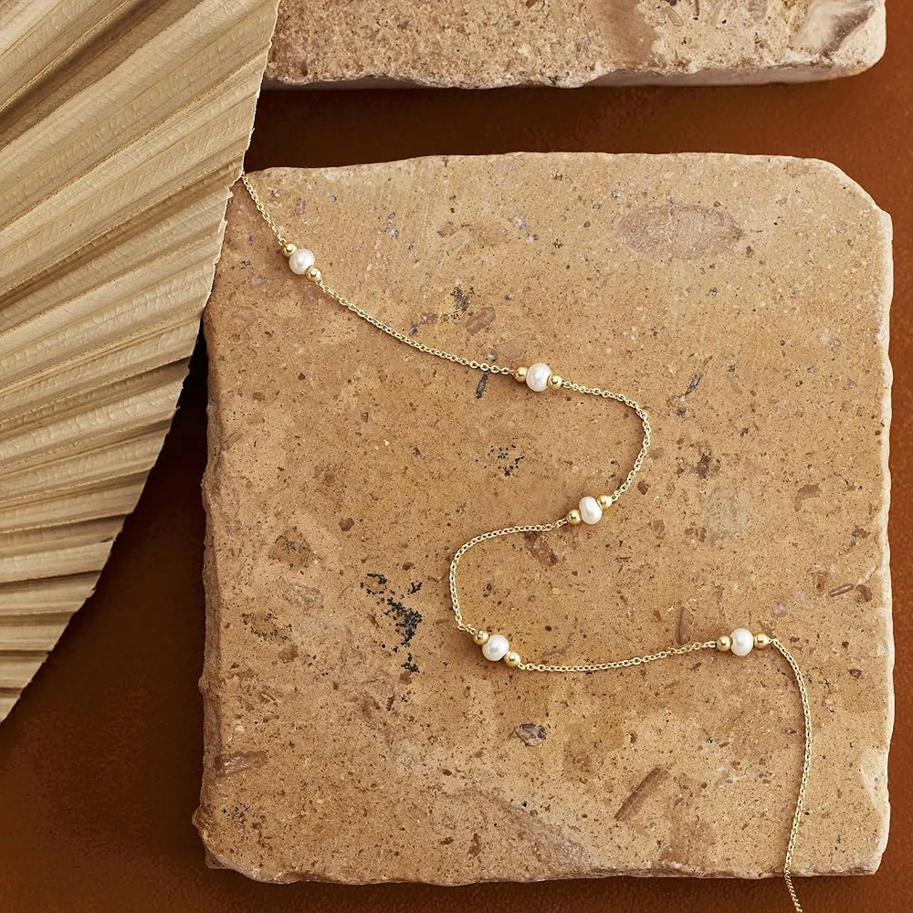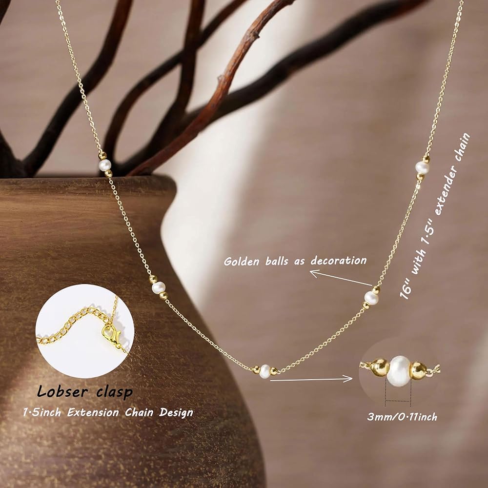 المادة: قلادة اللؤلؤ الدائنة مصنوعة من النحاس المغطى بالذهب 14K ، خالية من الرصاص ، خالية من النيكل و hypoallergenic
