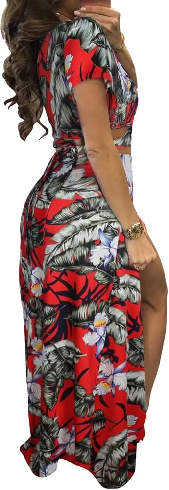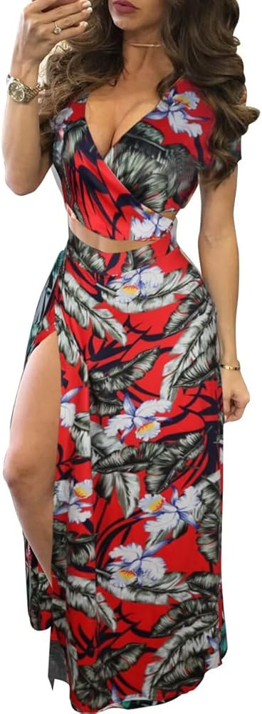 الميزة: الأزهار المطبوعة ، قمم محصول الرقبة V ، شق جانبي ، تنورة طويلة الخصر ، الأكمام القصير ، ملاءمة ضئيلة من قطعتين.