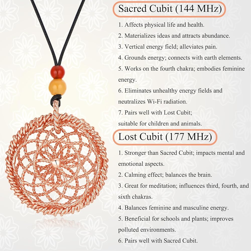 Experience the beauty and harmony of ancient sacred geometry combined with the powerful resonance of the Sacred Cubit (144MHz) and Lost Cubit (177MHz). This handcrafted pendant features the Lotus of Life design, made from pure copper with a gold plating finish, adorned with natural Red Agate and Yellow Jade beads for a captivating look and deeper spiritual alignment.