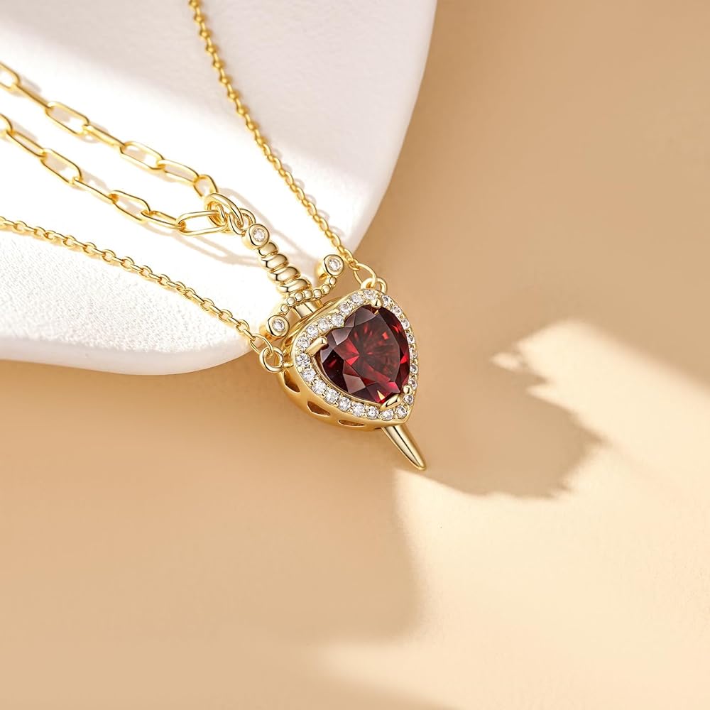 تصميم فريد: تجمع قلادة قلادة متشابكة بين رمز حب القلب بتمثيل السيف للحماية ؛ يتميز قلادة القلب بأخدود دقيق يحمل سحر السيف ؛ مزين بزركون على شكل قلب لإلقاء نظرة جريئة وذات مغزى على حد سواء رومانسية وممتازة على حد سواء