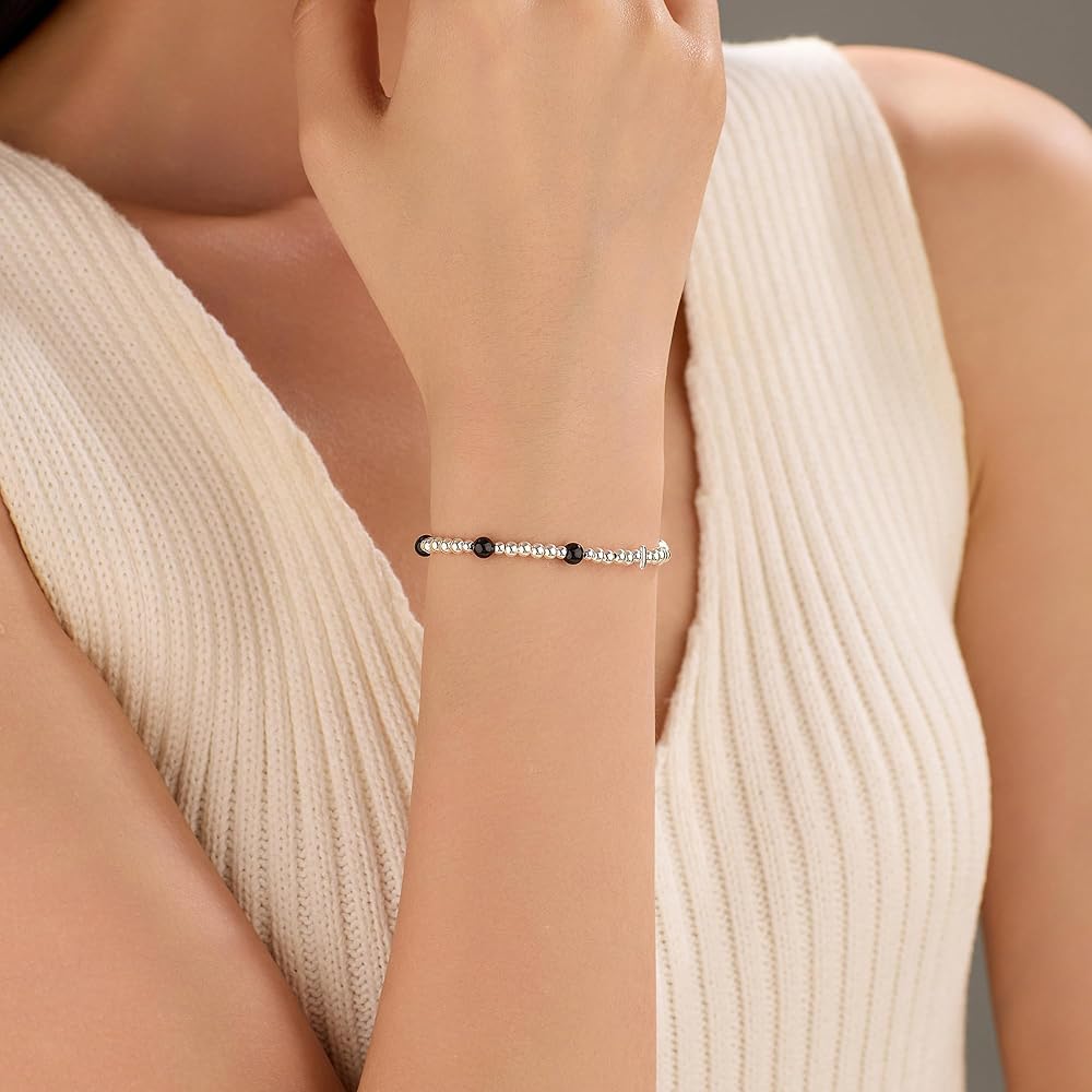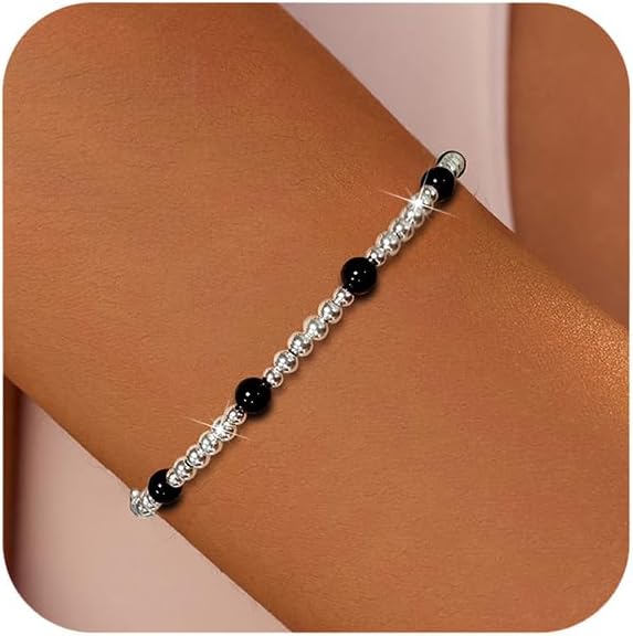 Sterling Silver beaded Bracelets for Women: Made with love. Our classic tennis bracelet for women featuring round bead ball and is adjustable up to 9.5 inches. Each gold bead bracelet can be worn separately or wear them together, or in combination with other bracelets to create their own style