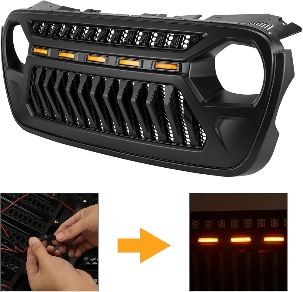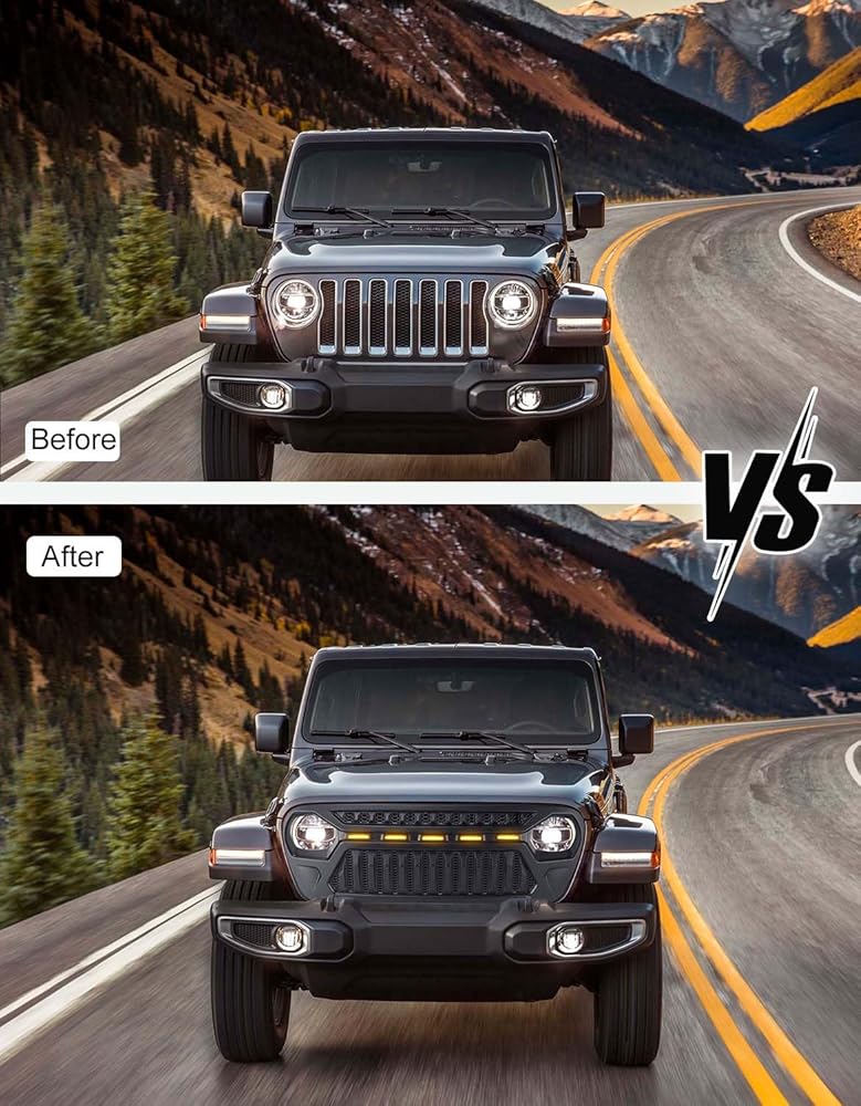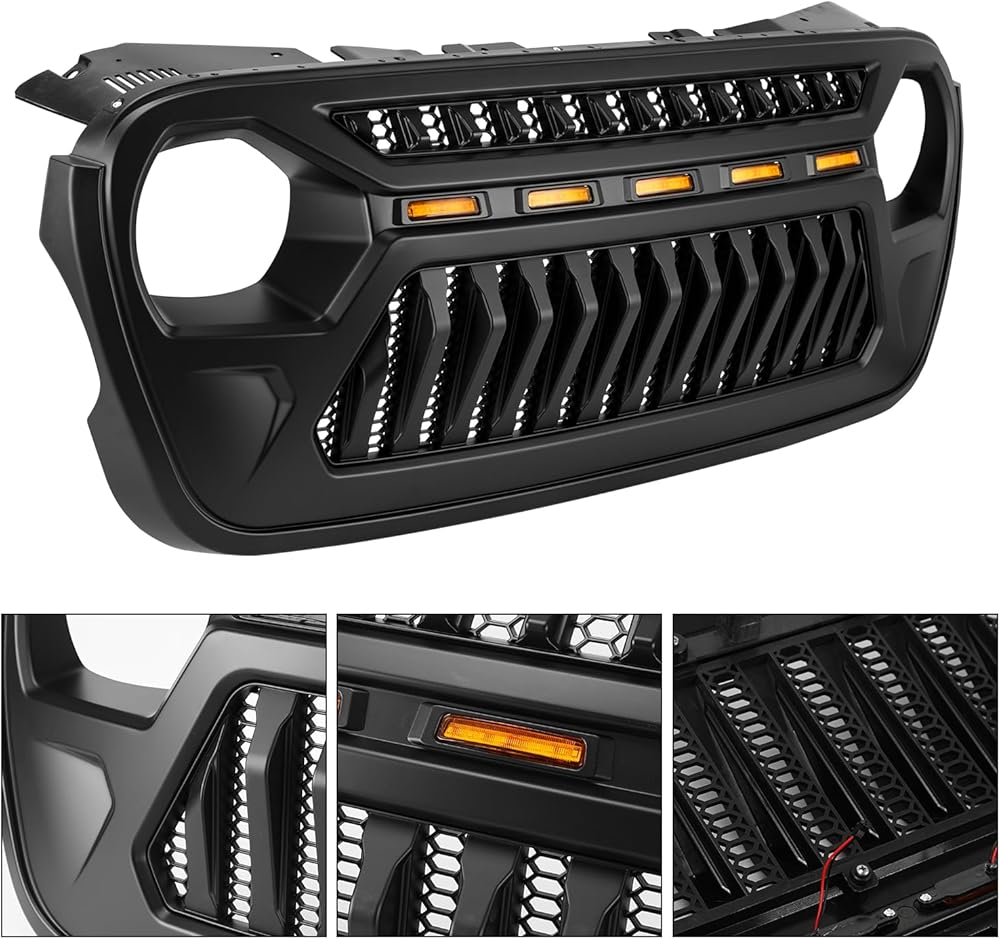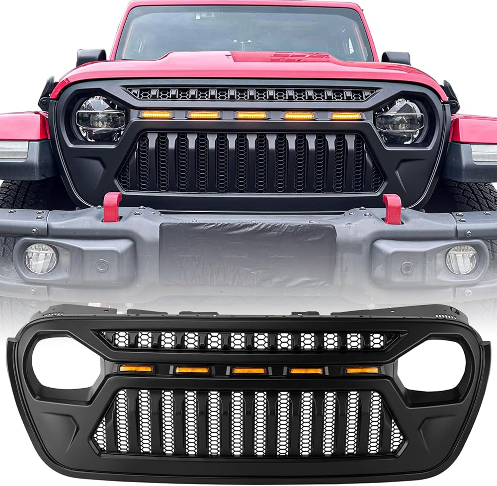 • متوافق: The Wrangler JLU Grill متوافق مع Jeep Wrangler JL JLU All Model 2018-2025 ، متوافق مع Jeep Wrangler JL JLU 4XE Plug-in Hybrid 2021-2025 ، متوافق مع Jeep Gladiator (JT) جميع الطرز 2019-2025.