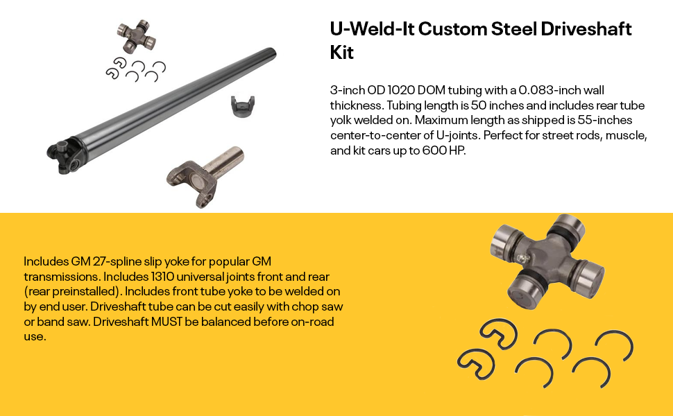 طقم عمود دوري الصلب المخصصة لـ Speedway Motors U-Weld-it Custom Steel ، سلسلة 3 بوصة ، طول أنابيب 50 بوصة ، تشمل GM 27 SPLINE SLIP TYK