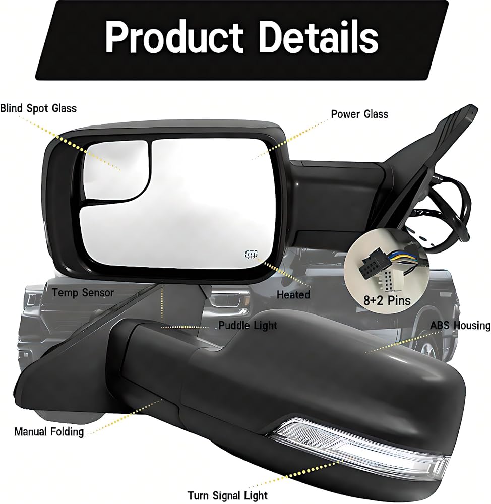 【ميزات المنتج】 8pins ، أسود محكم ، مع زجاج الطاقة ، وتدفئة ، إشارة الدوران ، الزجاج البقع العمياء ، ضوء البركة ، طي يدوي ، بدون مصابيح بقعة عمياء
