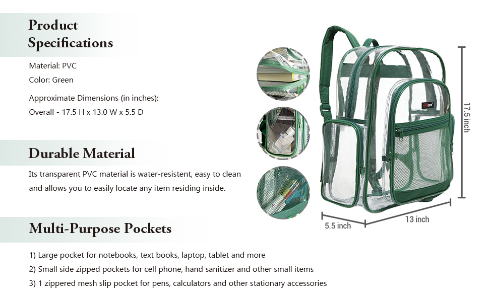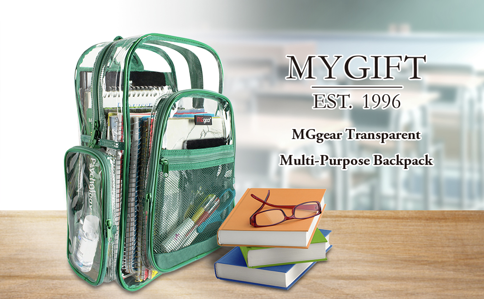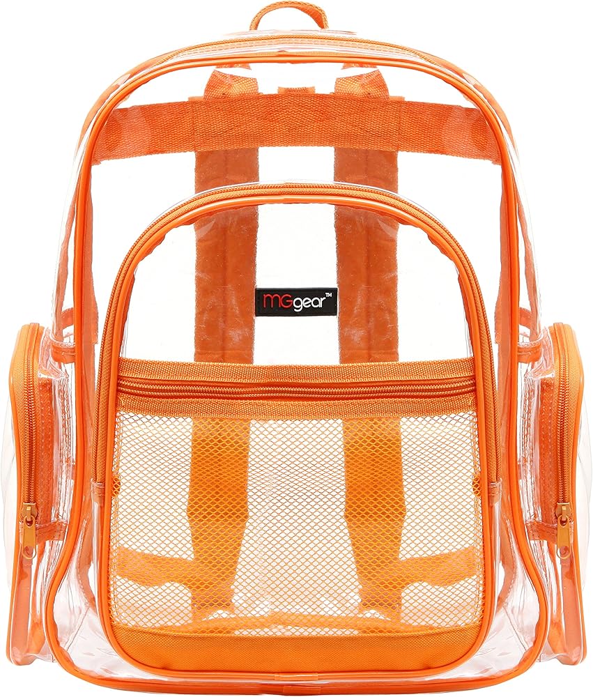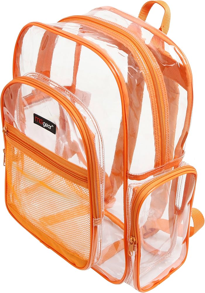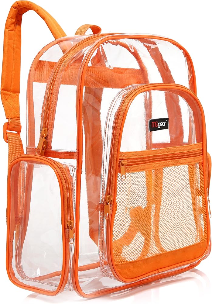 حقيبة ظهر شفافة مقاس 17 بوصة من MGear مع زخرفة برتقالية، حقيبة مدرسية شفافة من مادة PVC للاستخدام الخارجي