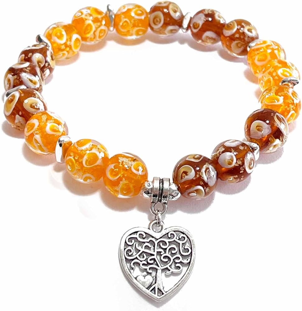 ❤ هذا السوار مصنوع يدويًا في الولايات المتحدة الأمريكية باستخدام حبات الزجاج المنفوخ يدويًا وخرز الهيماتيت المطلي بالفضة الاسترليني كقائد. سوار مرتبط بمرونة بلورية واضحة يمتد بسهولة لتناسب الرسغين من 6 إلى 7.5 بوصة.