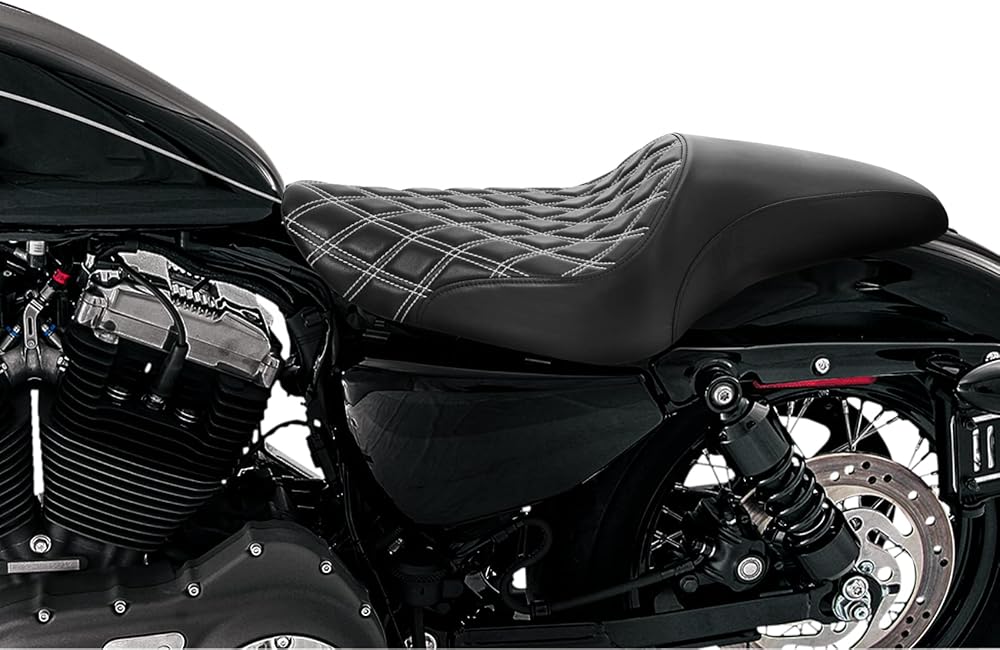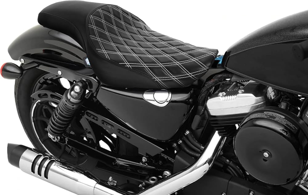نسخة. Rider Sportster SEAT 2 UP DRIVER+FITS PARCENGER FITS FOR HARLEY XL883 XL1200 Models 2004-2022 ، White Stitching