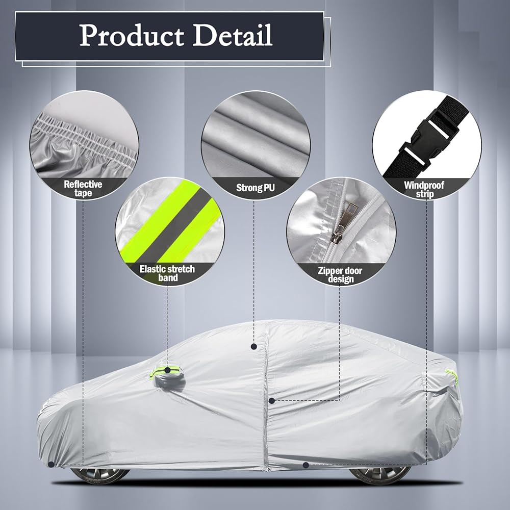 【تصميم مقاوم للرياح】 تم تصميم Migaven for Model 3 Car Cover خصيصًا لتحمل الرياح القوية. ① يتم خياطة أربعة أحزمة في مواقع الإطارات الأربعة للمساعدة في تأمين الغطاء على العجلات ، مما يضمن أن يبقى في مكانه. ② يتميز الجزء السفلي بأشرطة مقاومة للرياح مصممة خصيصًا تمر عبر منتصف السيارة لمنع الغطاء من الانفجار. ③ يتيح تنحنح مرنة قابلة للتعديل تعديلًا سهلاً وتركيبًا آمنًا لجسم السيارة.