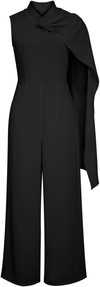 It's a sleeveless jumpsuit with removable drape in one shoulder of either side. Buttons in bust/shoulders and back center zip. Standard size S approx. length: 140 cm/ 55.1 inches; Plus size approx. length: 146 cm/ 57.5 inches. MATERIAL: 100% POLYESTER. CARE: MACHINE WASH WASH SEPARATELY DO NOT BLEACH WARM IRON DO NOT TUMBLE DRY.