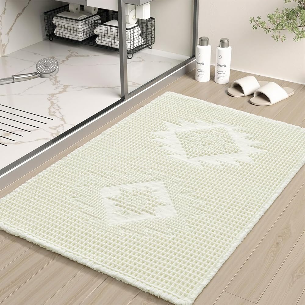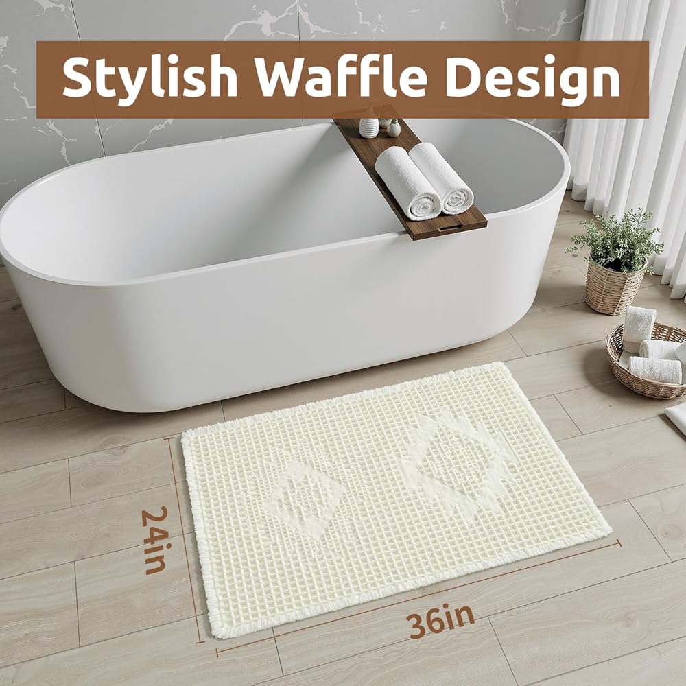 سجادة حمام كوكوير وافل، سجادات حمام فائقة الامتصاص لأرضية الحمام، سجادة حمام غير قابلة للانزلاق قابلة للغسل في الغسالة مع شرابات، سجادة حمام ناعمة لغرفة الغسيل، غرفة النوم، 24 بوصة × 36 بوصة