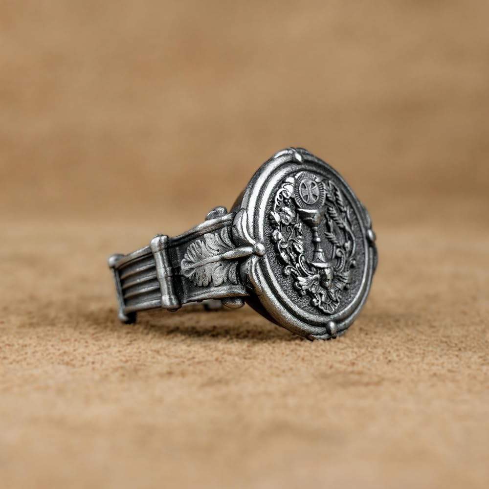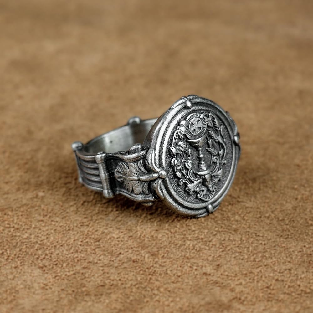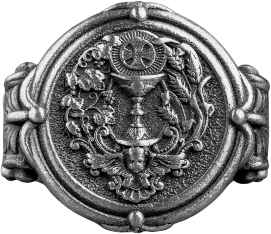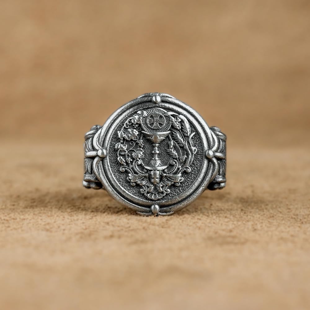 Eucharist Holy Communion Silver Men Ring, Unique Design Christan Ring, Mens ChristianGift, Holy Grail Silver Signet Ring, Anniverary Gift