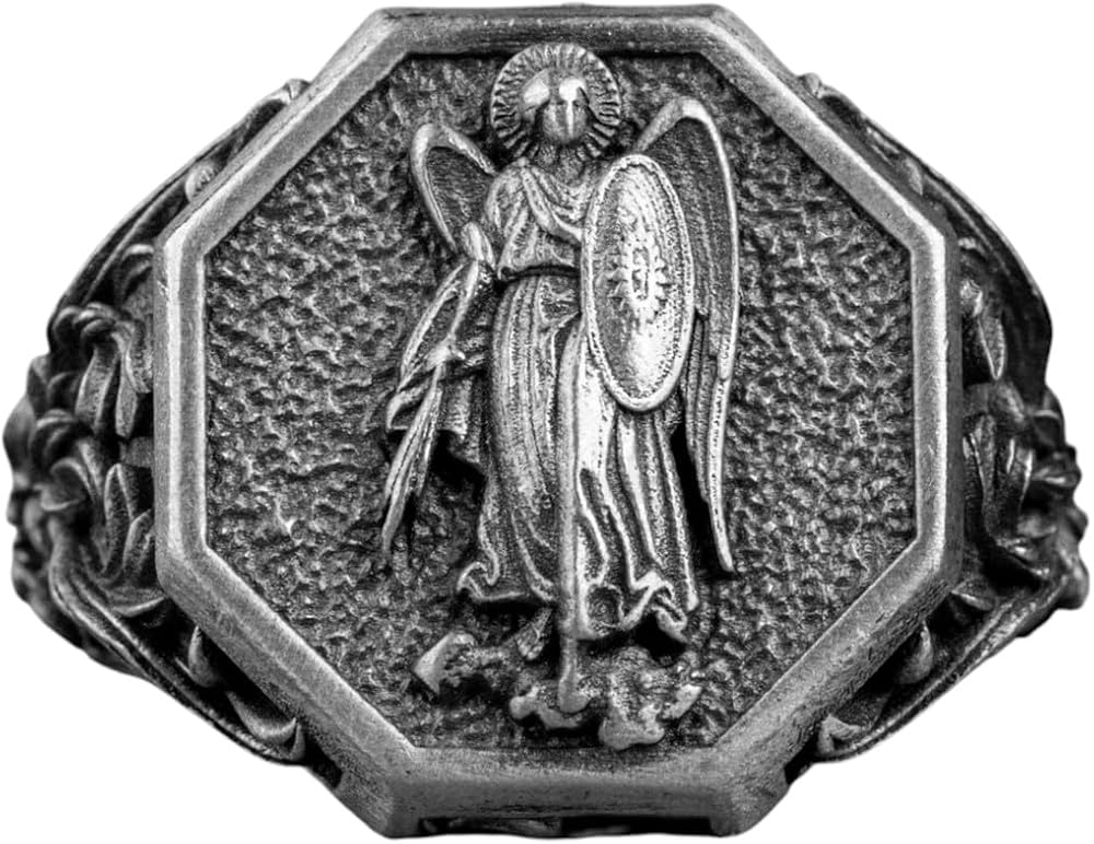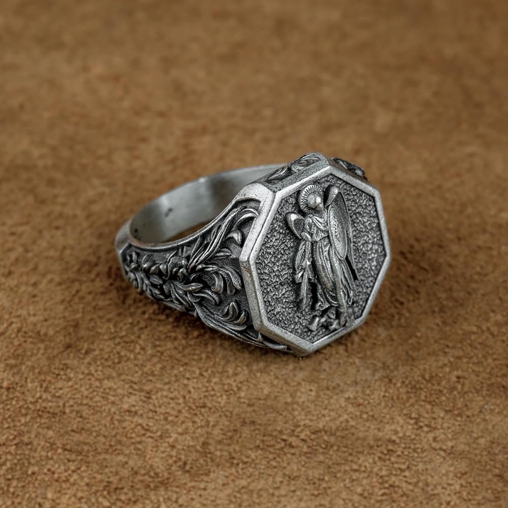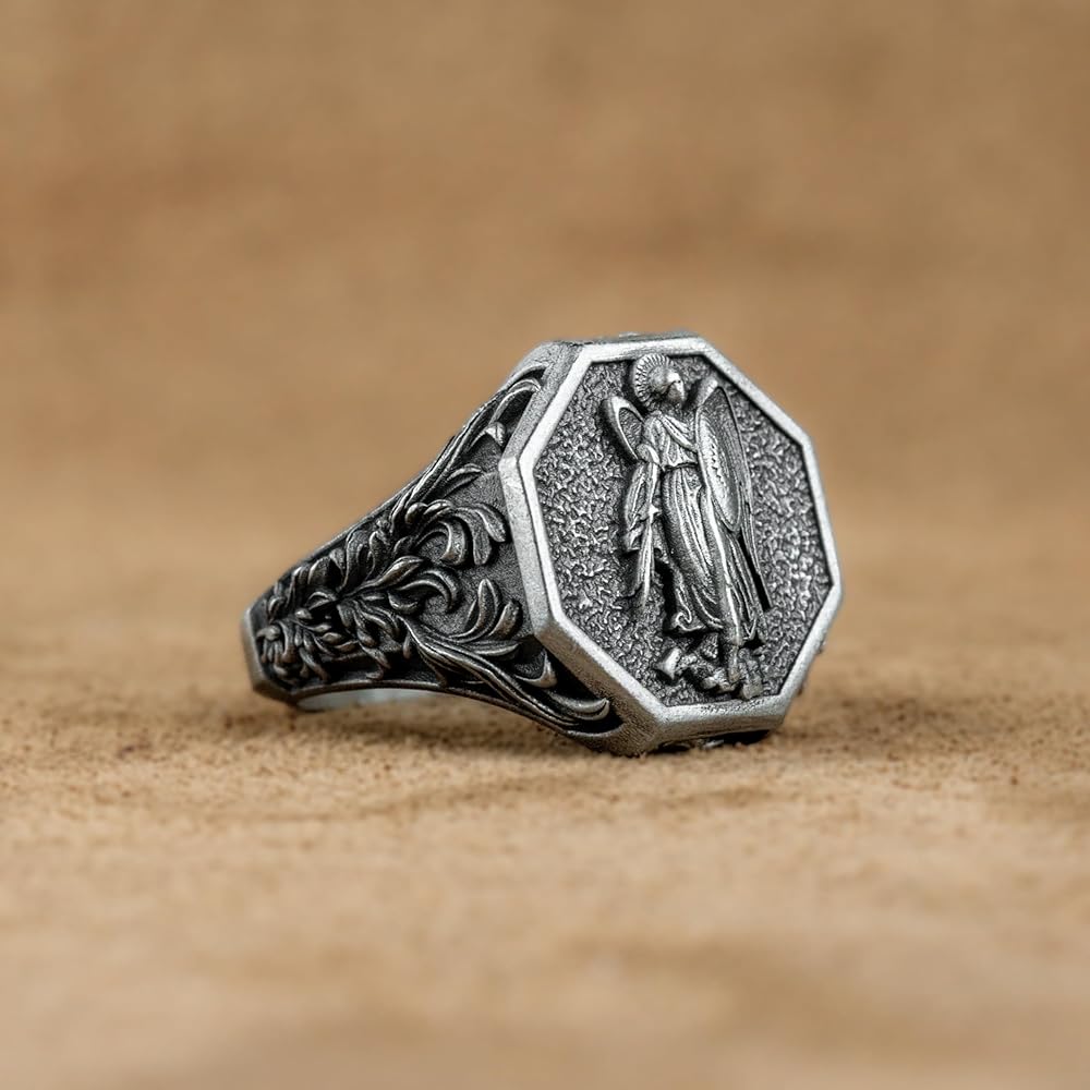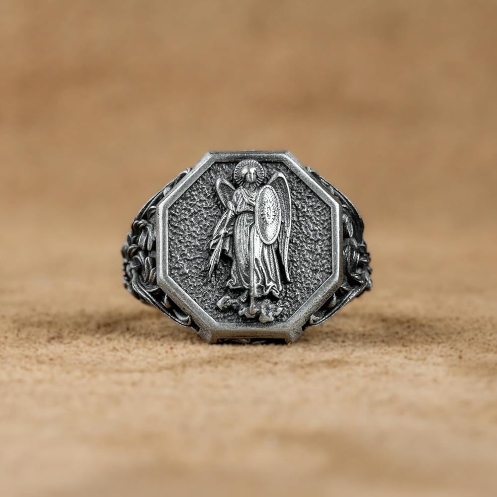 Saint Michael The Archangel Silver Men Ring, St Michael Commander of The Army of God, Religious Jewelry, Pray For Us Ring, Anniversary Gift