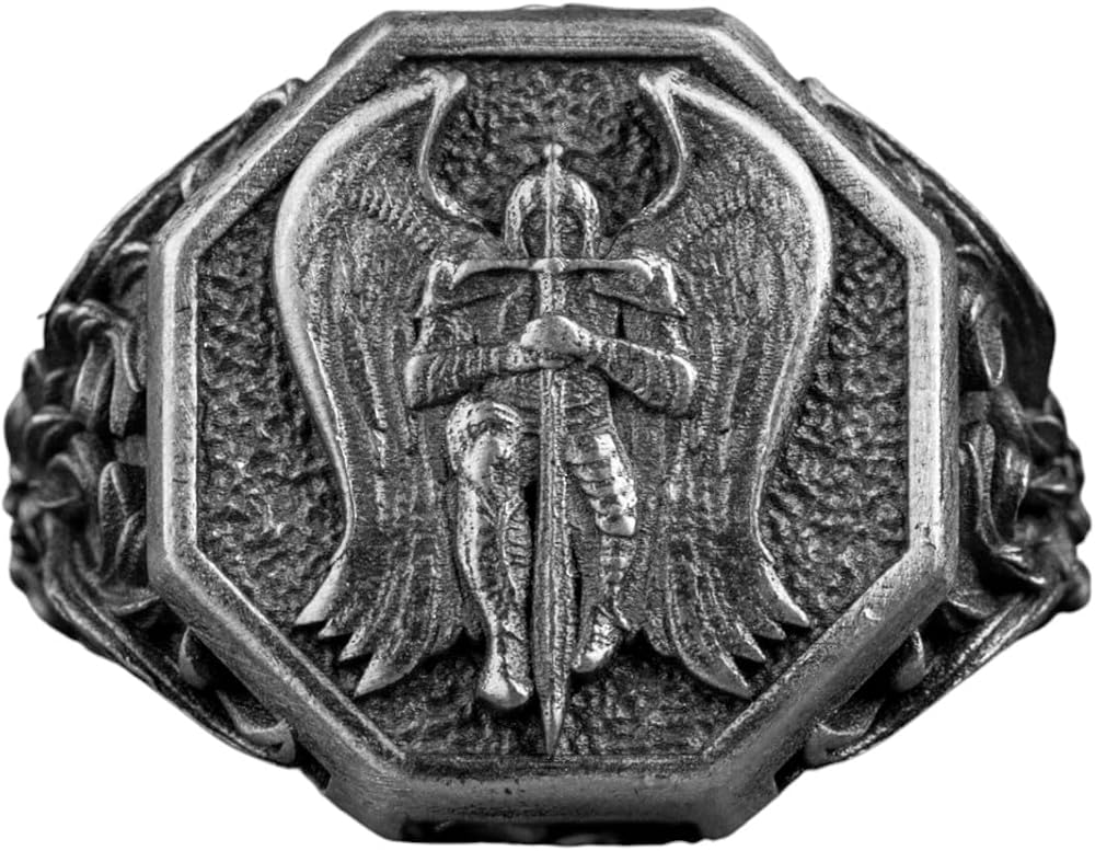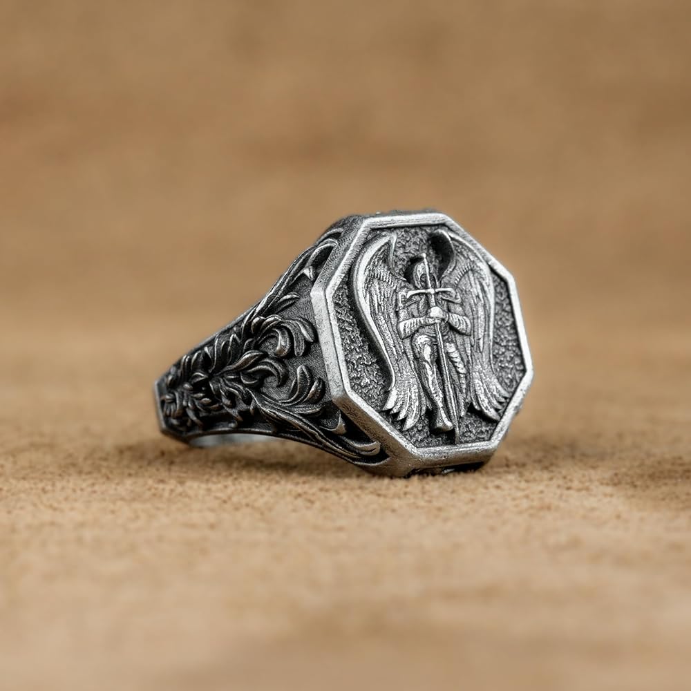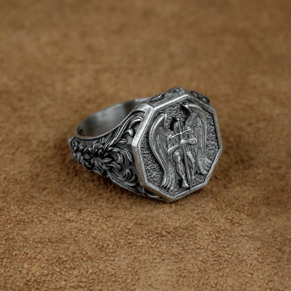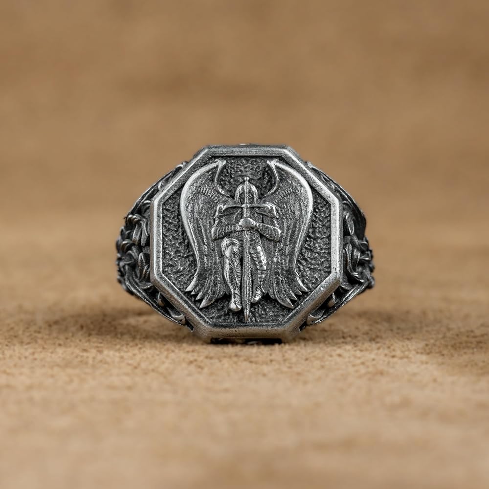 Archangel Saint Michael Silver Ring, Christian Angel with Cross Ring , Guardian St Michael Jewelry, Best Medieval Ring, Anniversary Gift