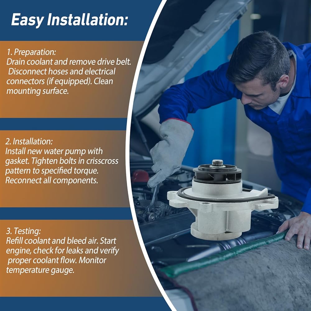 تضم سيارة مضخة المياه المثالية التي تم تصميمها كبديل مباشر OE ، وتشمل مجموعة مضخة المياه هذه جميع الحشيات والأختام اللازمة لتركيب خالٍ من المتاعب ، مما يضمن توافقًا سلسًا مع سيارتك.