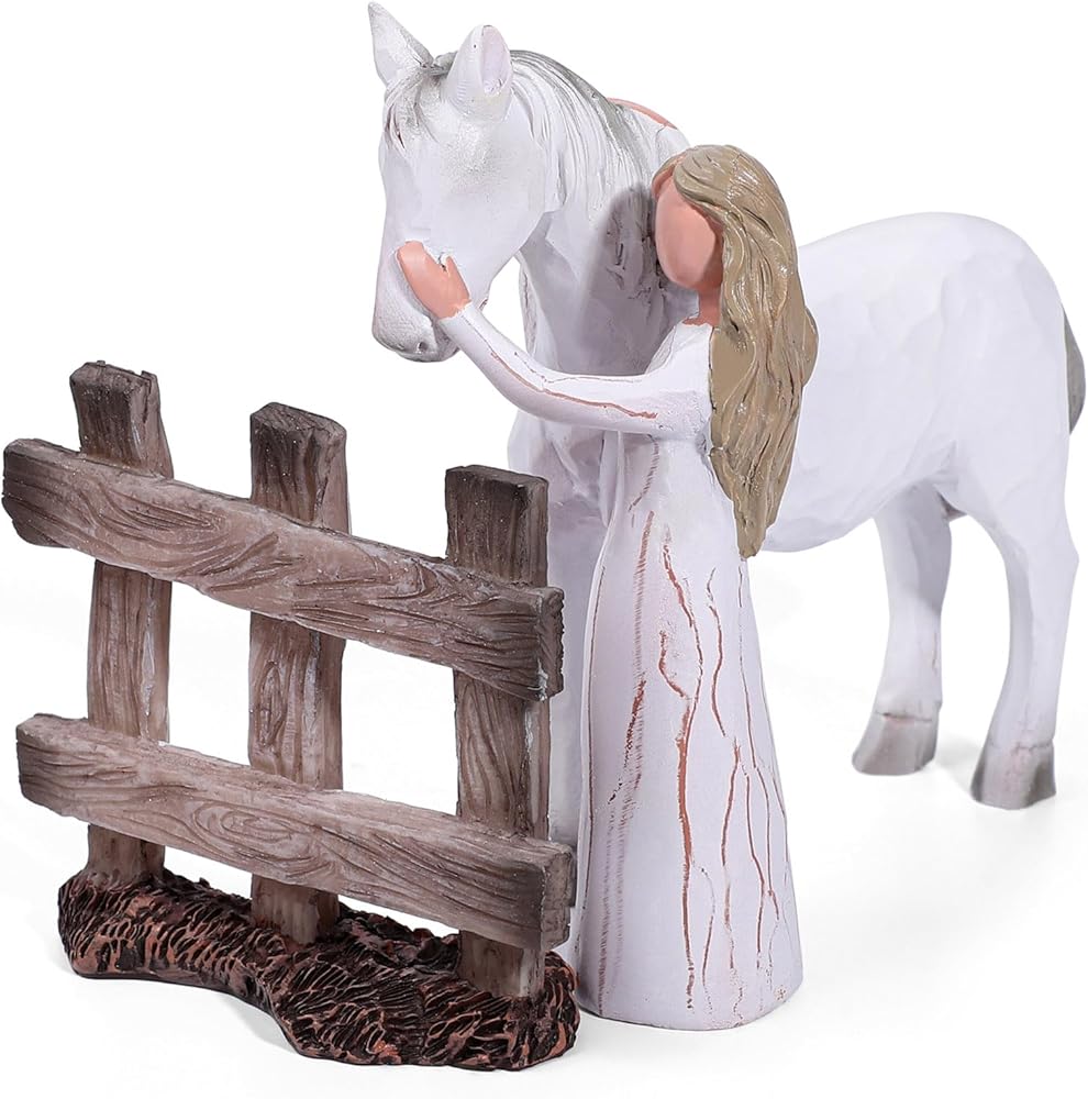 【مواد عالية الجودة】: لن تتلاشى هذه الفتاة والخيول من مواد راتنج عالية الجودة ومرسومة يدويًا ، ولن تتلاشى لسنوات ، وتراجع رعاة البقر في ثوب أبيض ، مع ذراعيها حول الحصان ، إنها بسيطة بالألوان ، ومع ذلك ، فهي مغلفة في صندوق هدايا جاهزة للهدية.