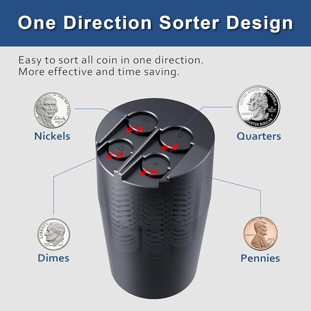 【الفرز أحادي الاتجاه 】 هذا كوين كوين للسيارات يتميز بقطعة مقاومة للدفاع عن الأربعة التي توجه الأرباع ، الدايمات ، النيكل ، والبنسات إلى غرف منفصلة. لا مزيد من التحسس-التغيير الدقيق في الثواني في أقراص القيادة أو آلات vending . ملحق سيارة must-have للرجال والنساء-الذين يقدرون الكفاءة.