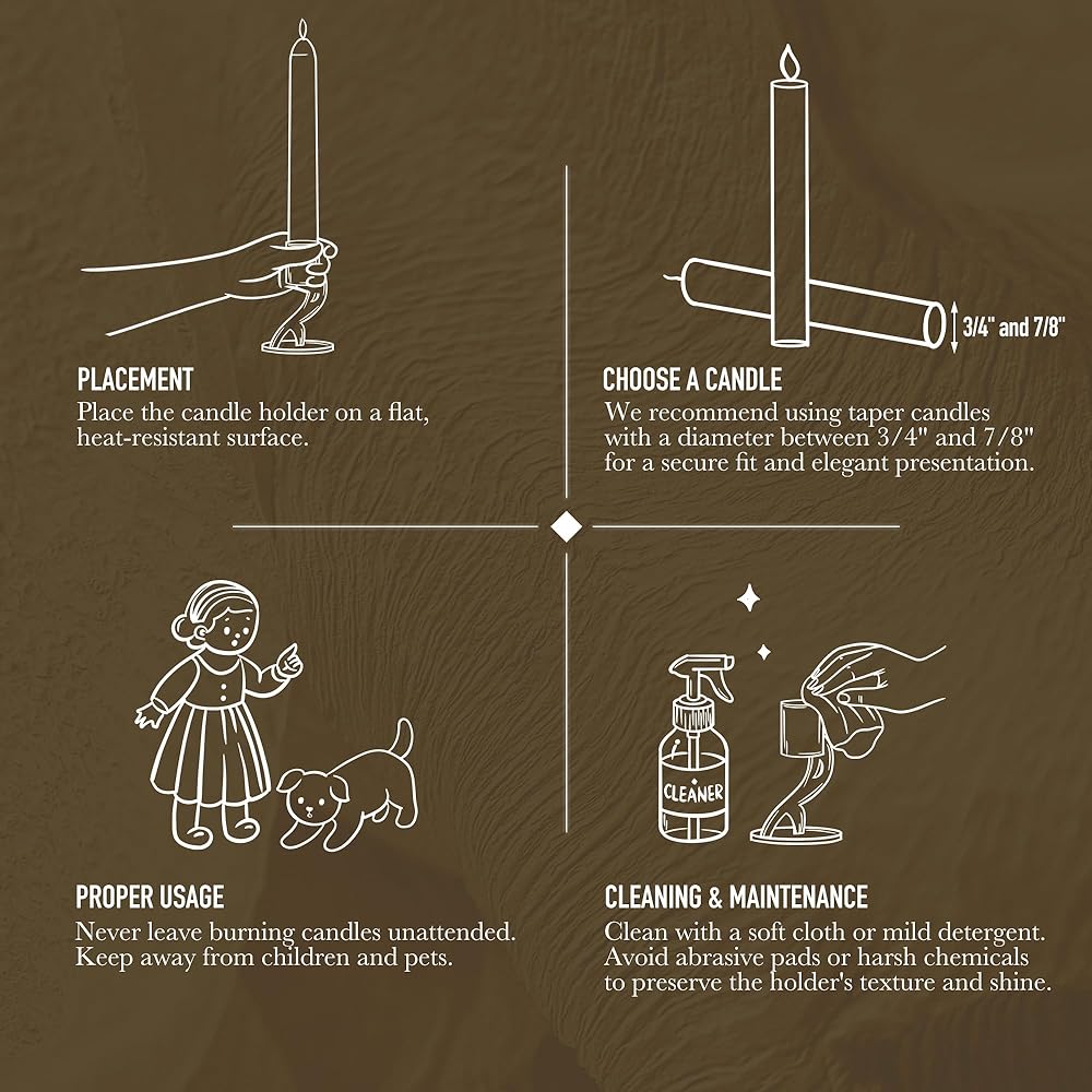 حجم الشمعة المناسب: يبلغ القطر الداخلي للكأس 0.96 بوصة (24 ملم) ، وشموع مدبب قياسية مناسبة تمامًا 3/4 "و 7/8