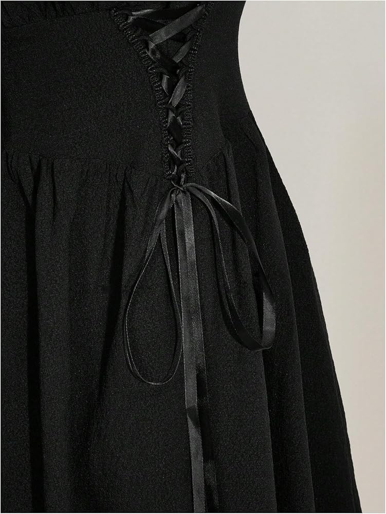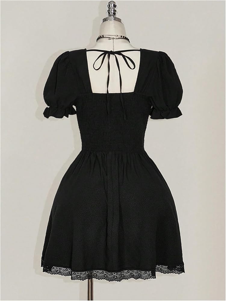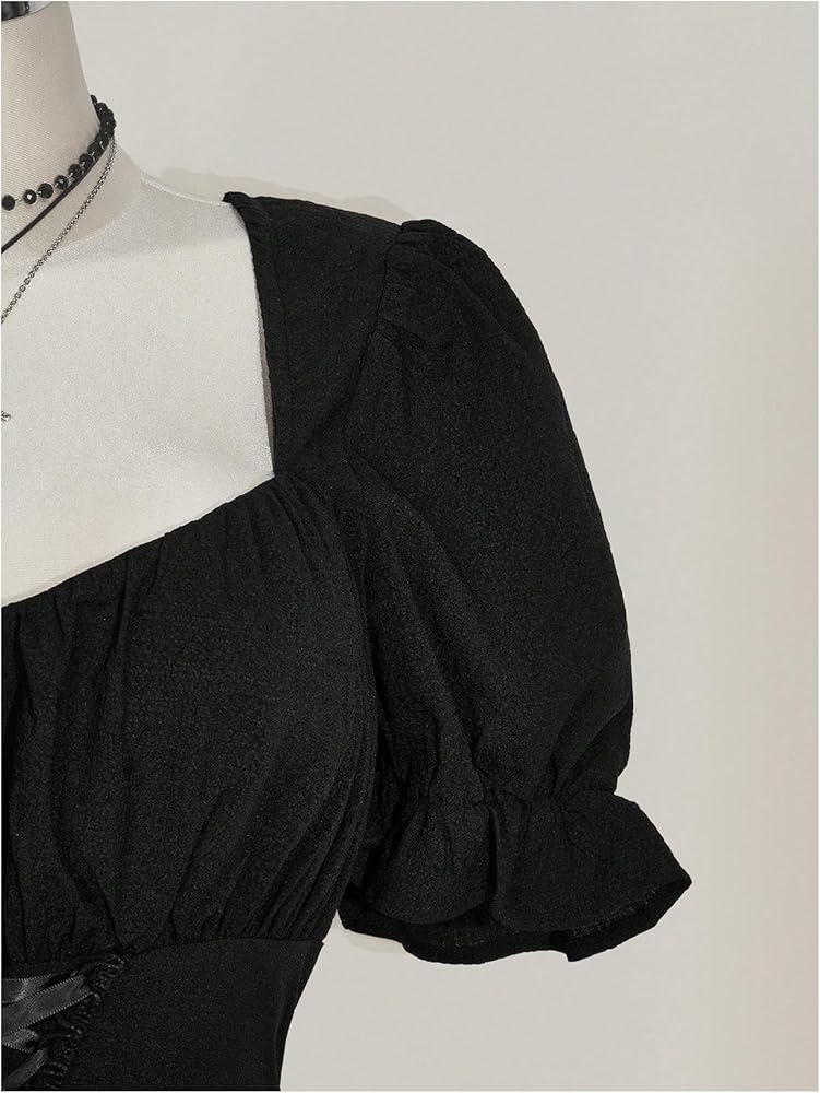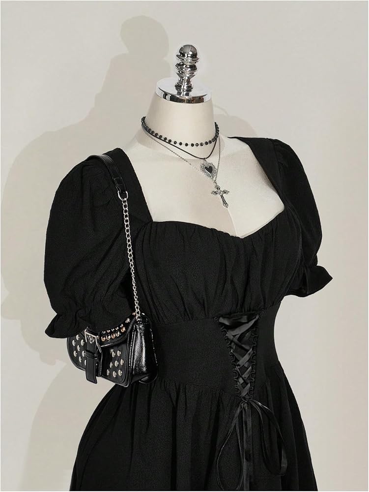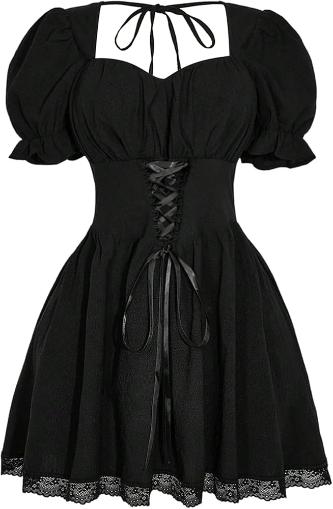 • Feature: Plus size, lace up, contrast lace, tie back, sweetheart neck, short sleeves, flared hem, short milkmaid dresses for women