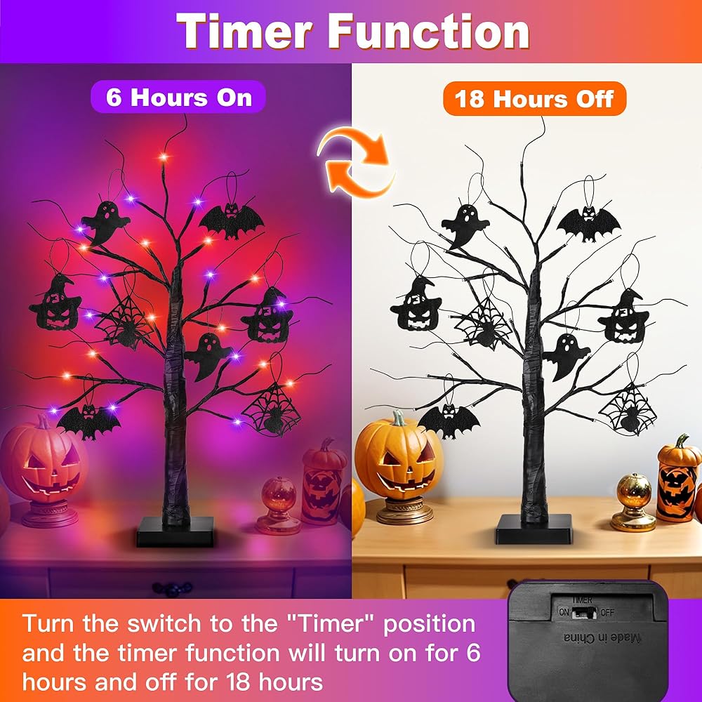 USB أو البطارية تعمل بالبطارية: يمكن تشغيل شجرة ديكورات الهالوين الداخلية من خلال 3 بطاريات AA (غير مدرجة) أو كابل USB (متضمن) ، مما يوفر المرونة في الاستخدام. أنت تضعهم في أي مكان دون القلق بشأن المنافذ.