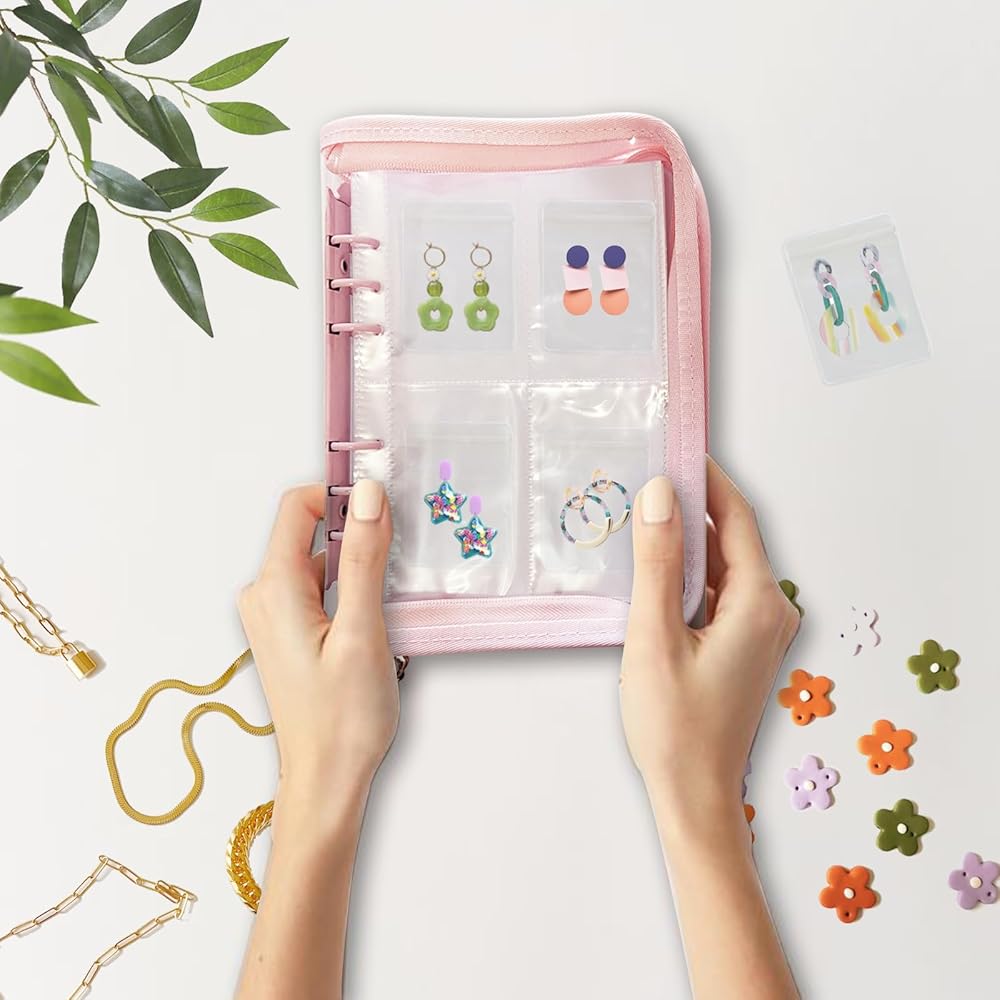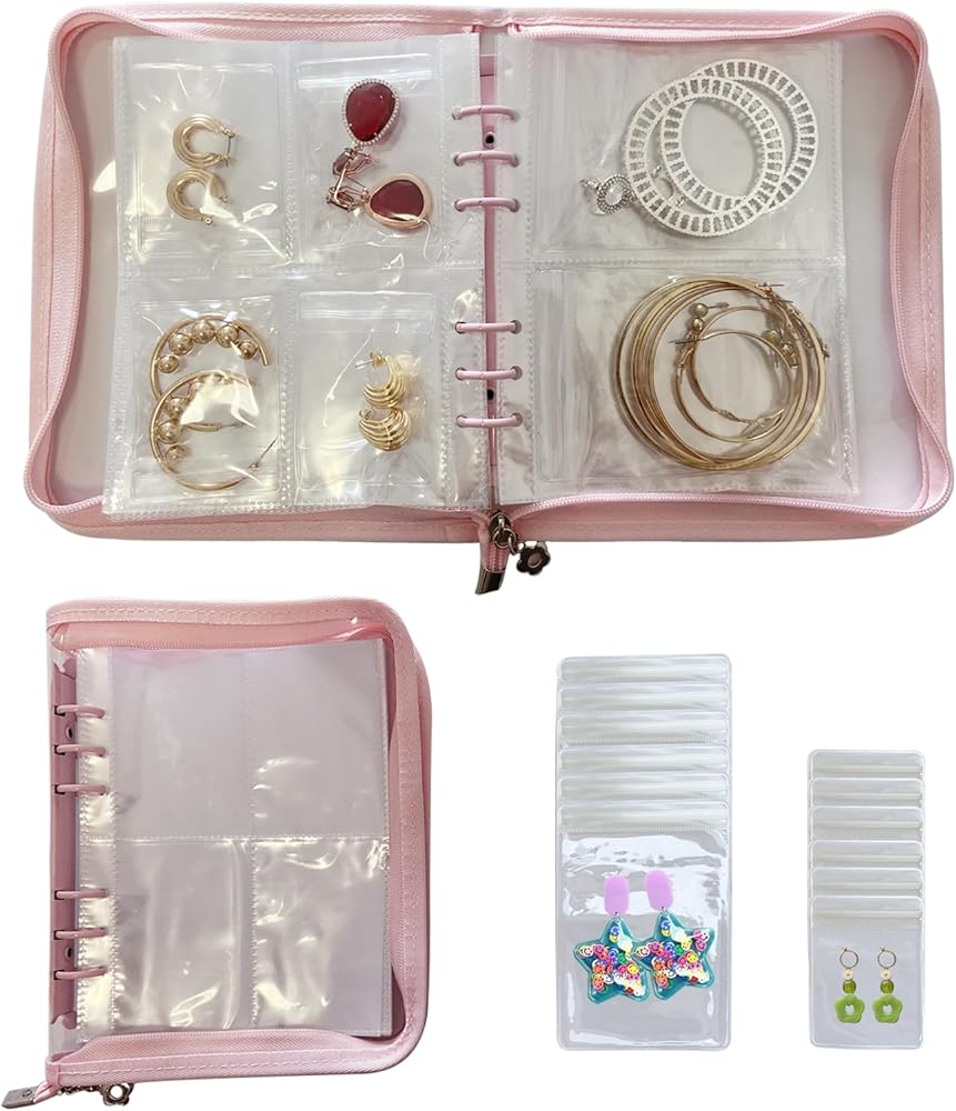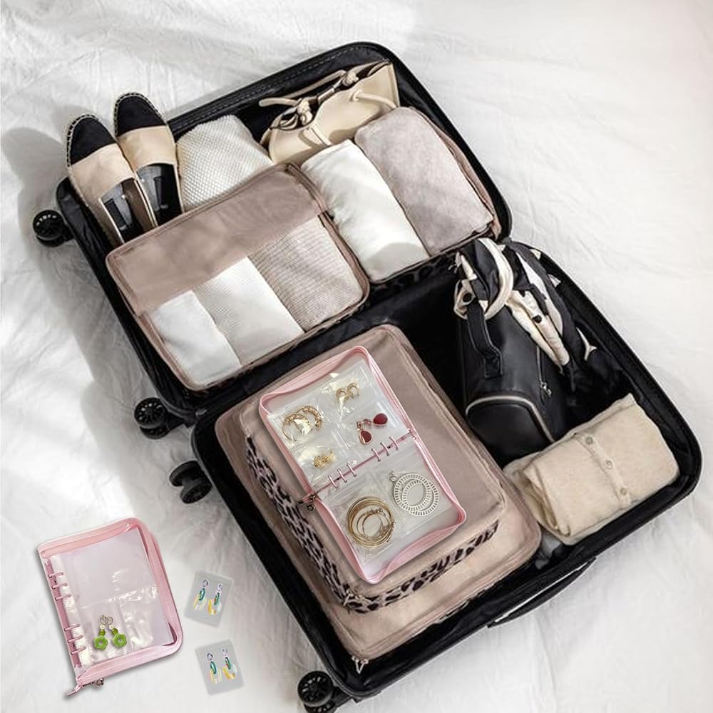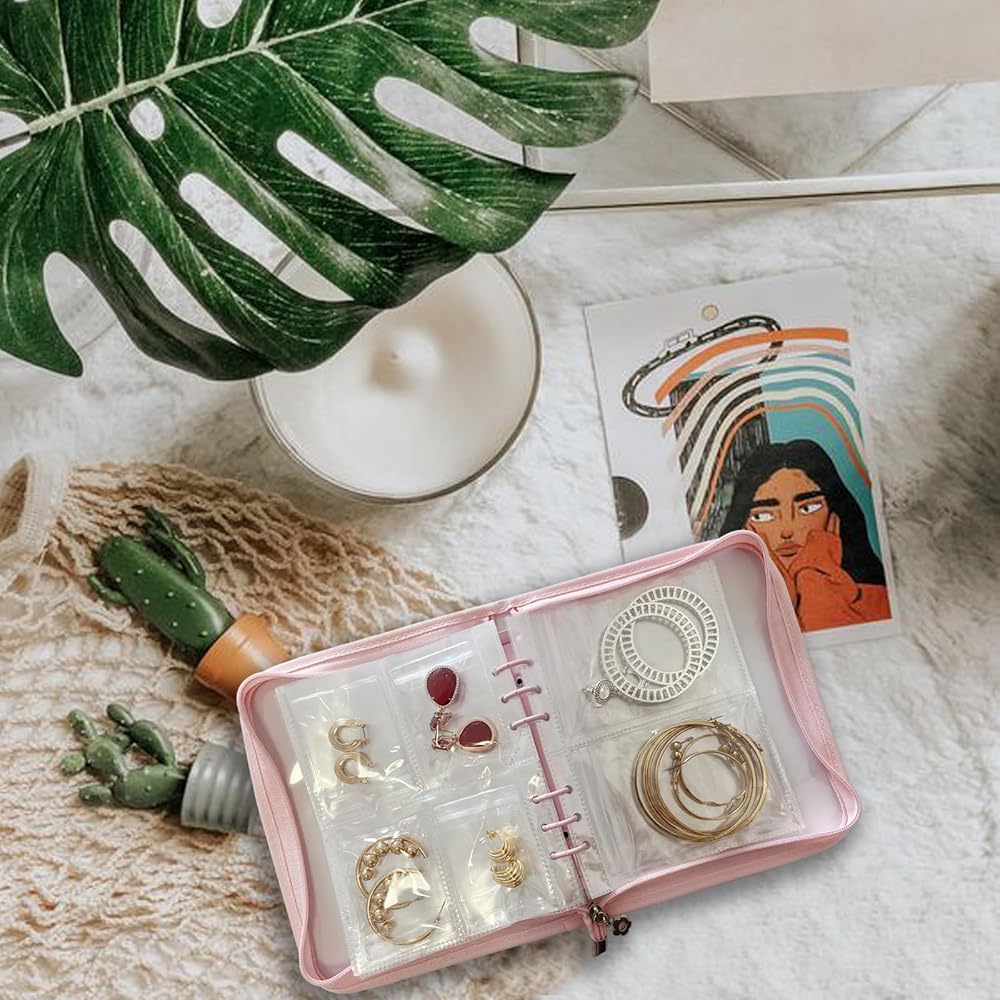 【منظم مجوهرات بتصميم مجلد】مع غلاف معدني، يمكنك العثور على المجوهرات التي تحتاجها أو اختيارها بسرعة. كما يمكنك إزالة الصفحات بسهولة، خاصة عند السفر، فقط اترك الصفحات التي تريدينها، ثم قم بسحابها، وستكون المجوهرات جاهزة.