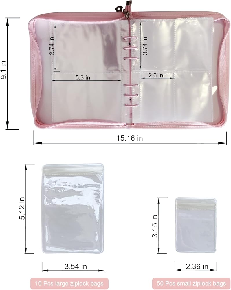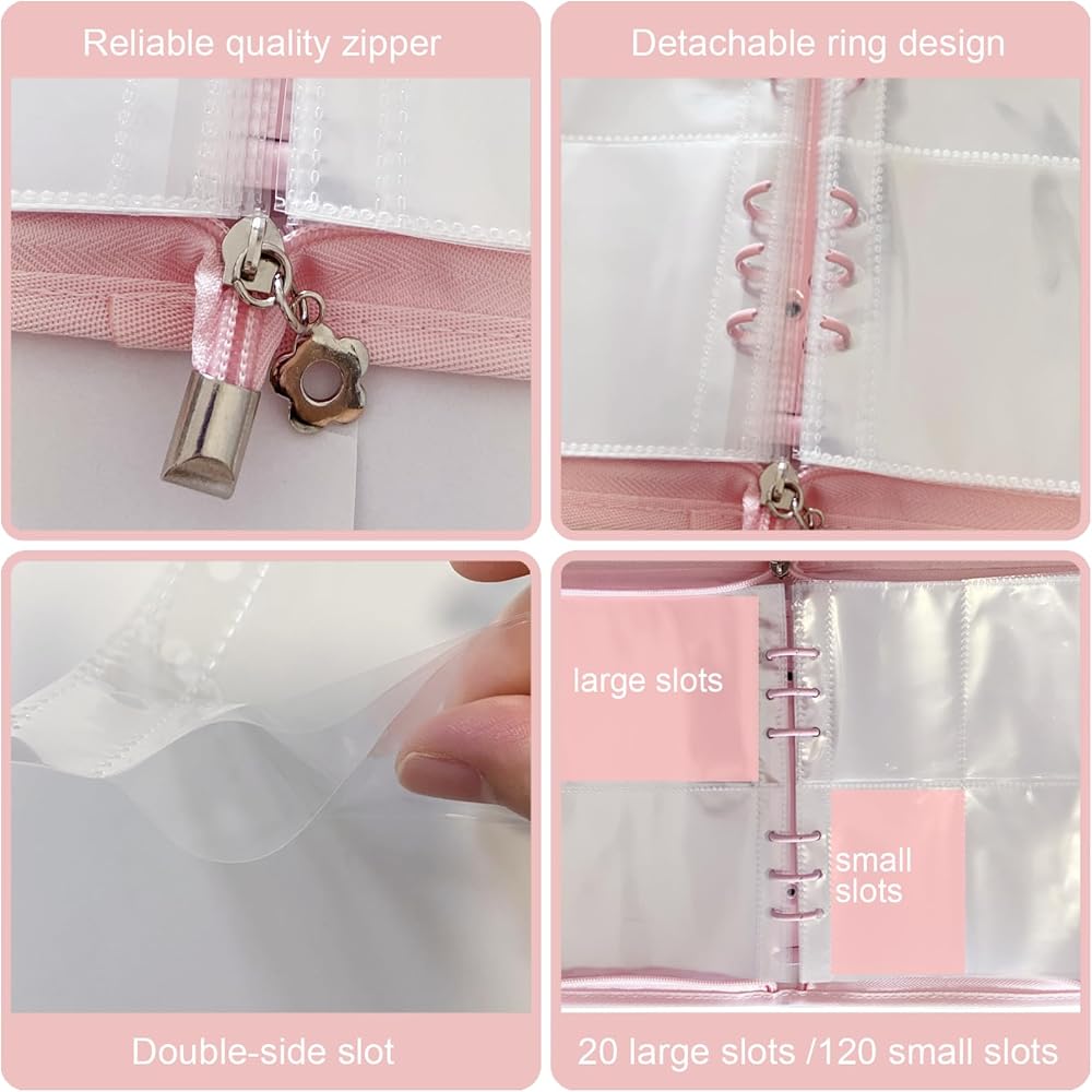 【تخزين مجوهرات محمول】مقاس دفتر تخزين المجوهرات 9.1 × 15.1 انش؛ ويحتوي على 140 فتحة للبطاقات (20 صفحة داخلية). نقدم 60 قطعة من الجيوب إجمالاً: 10 قطع (3.54 × 5.15 انش) للفتحات الكبيرة؛ 50 قطعة (2.36 × 3.15 انش) للفتحات الصغيرة. تخزين المجوهرات مع سحاب سهل الحمل ومحمول ومريح.