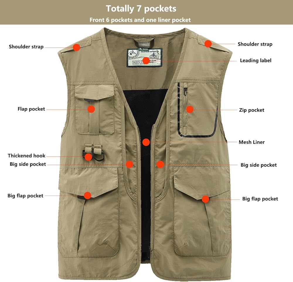 【الجيوب المتعددة وبطانة الشبكات】 توفر 7 جيوب تمامًا ، مثل 2 جيوب علوية (جيب فليب واحد وجيب سحاب واحد) 2 جيوب داون من الجيوب الكبيرة وجيوب كبيرة من الجانبين وجيب بطانة واحد ، هذه سترة الجولف في التخييم في صيد الأسماك مريحة للحفاظ على هاتفك ، محفظة ، كرة جولف ، طمرات أو غيرها من الأجهزة الثمينة أثناء السفر الخارجي. باستخدام بطانة شبكية ، توفر لك سترة سترة Safari غير الرسمية البضائع هذه بيئة أكثر جفافًا عند التعرق.