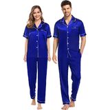 نسيج الساتان الحريري: 95% بوليستر و5% ألياف لدنة. (نصائح: تباع كل مجموعة من البيجامات المطابقة بشكل منفصل، يرجى الانتباه إلى "الرجال" و"النساء")