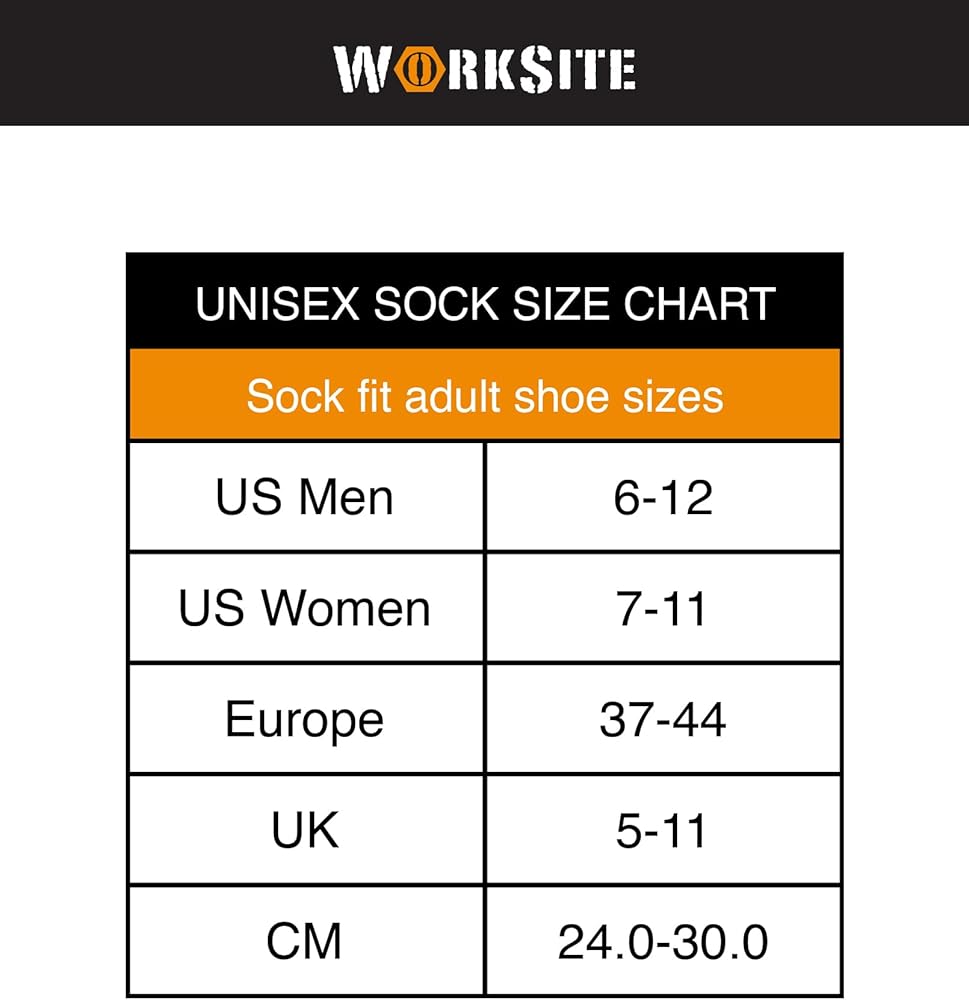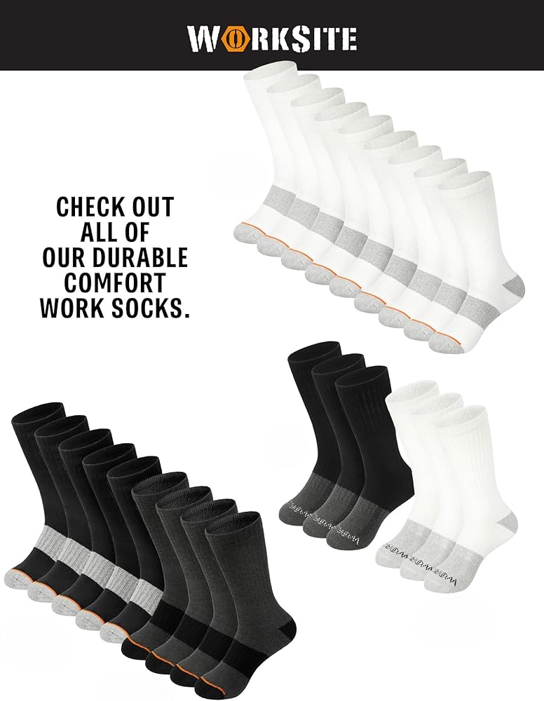 Worksite's men's workwear socks are built with you in mind. Our work socks feature high quality cotton, a cushioned footbed, extra arch support and has a breathable moisture controlling design. These casual socks are made for to keep you prepared for whatever comes in your way. Be confident and comfortable in our crew socks for men. Designed with you in mind.