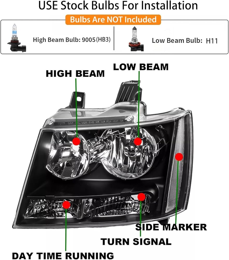 • 【Package Include】1x Pair of Headlights( Driver and Passenger side);Include Bulbs ,not include Writing Harness