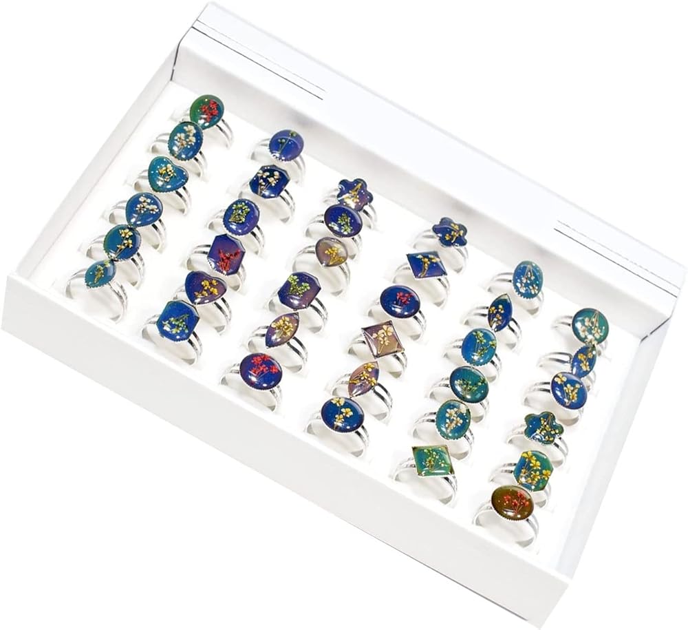 - كمية 36 قطعة حلقات مزاجية مع صندوق مجوهرات عرض البيع بالتجزئة