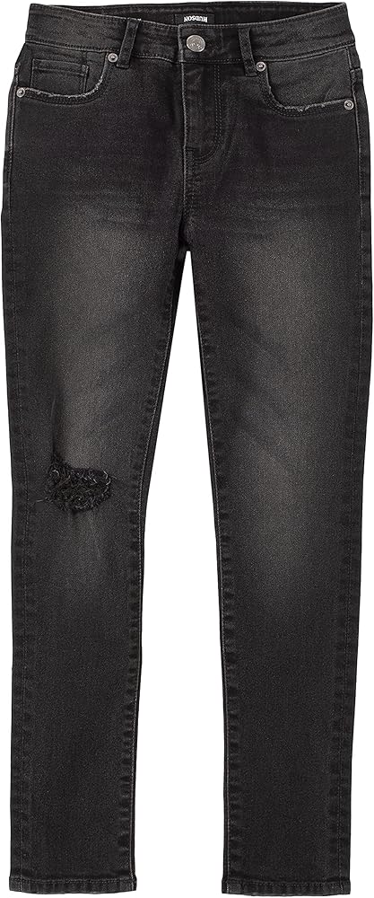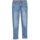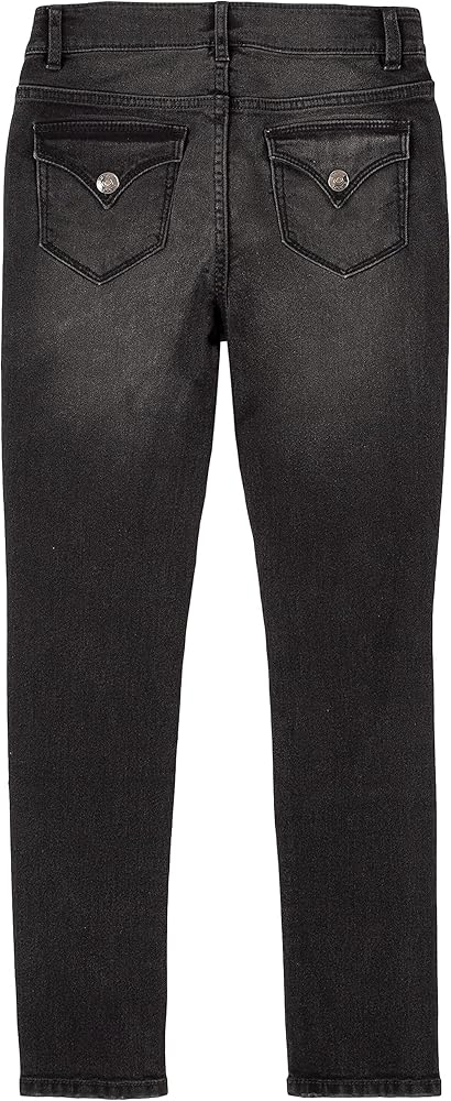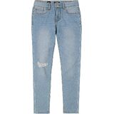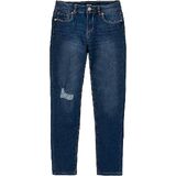 يتميز هذا الجينز الضيق للفتيات المكون من 5 جيوب من قماش الدنيم بمقاس نحيف، ودنيم فائق التمدد، وارتفاع منتظم، وتمزق وإصلاح، وجيوب خلفية عملية بغطاء، وسحاب أمامي للإغلاق.