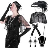 تتضمن هذه الأزياء ذات 8 قطع العشرينات للنساء كل ما تحتاجه للمظهر القديم المثالي: 1 × 1920s شال ، وعدة رأس ريشة 1 × ، وأقراط 2 × Art Deco ، و 1 X Faux Pearl Necklace ، و 1 × قفازات طويلة ، و 1 × الحامل البلاستيكي. تضيف غطاء رأس الريشة لمسة نهائية مثالية مع التألق الساحر.
