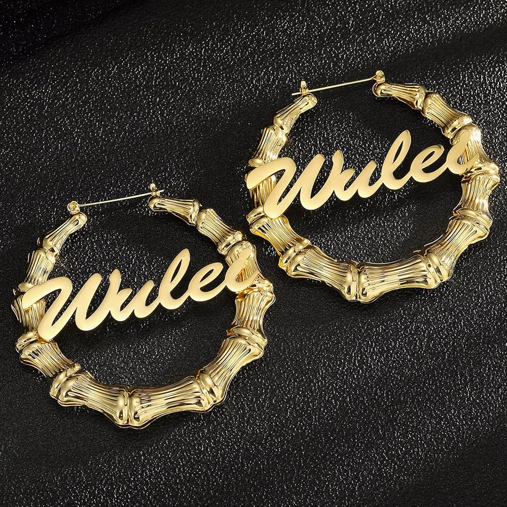 👍『Personalized Large Hoop Bamboo Earrings』These stunning and elegant earrings are perfect for any special occasion. With large hoops and bamboo design, these earrings are sure to turn heads. You can personalize them with your loved one's name, date of birth, or any other special message. These earrings make a beautiful and unique gift for women.
