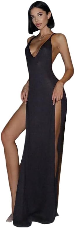 Sexy backless split long beach dress is suitable for summer, perfect for bikini at tanning salon, beach vacation, swimming pool, poolside and cruising