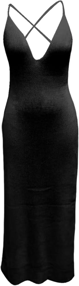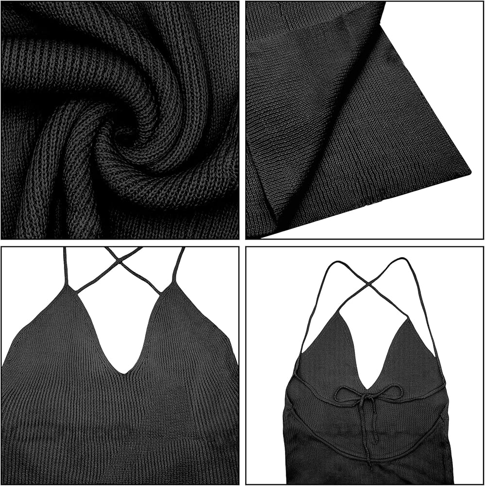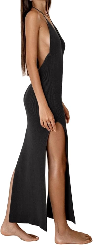 JASASCCEL Women's Sexy Knit Long Dress Summer Open Back Halter V Neck High Side Split Dress Bikini Swimwear Bathing Suit Coverup Crochet Beach Dresses